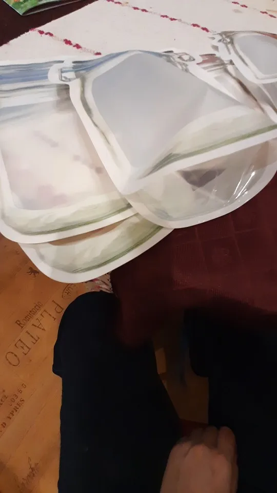 интересные пакетики-баночки для плоского хранения. Стоит учесть, что горлышко узковато для толстых рук. Очень платный пластик. Продавец отправил быстро.