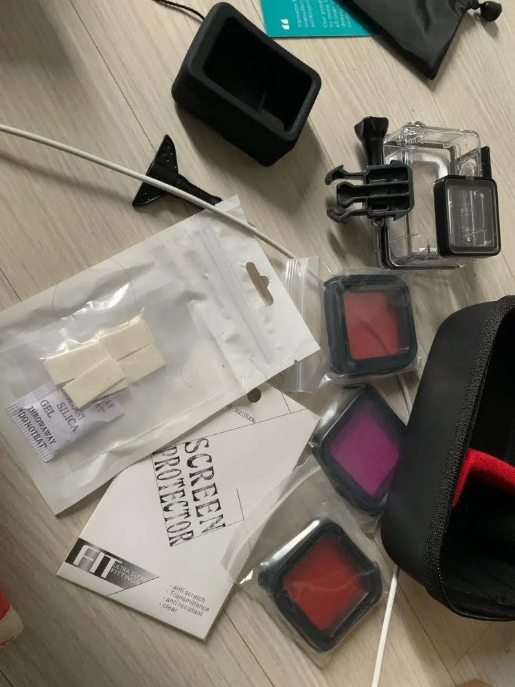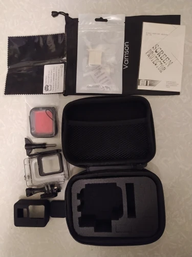 Хороший набор. Брал ради бокса, но и все остальное оказалось очень неплохим. В бокс камера входит хорошо, плотно. Мягкий чехол тоже подошел к камере. Защитные пленки я не ставил, поскольку планирую использовать камеру в боксе. Ну и кейс понравился, все теперь в одном месте.