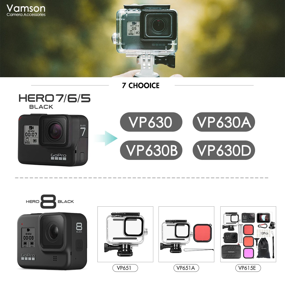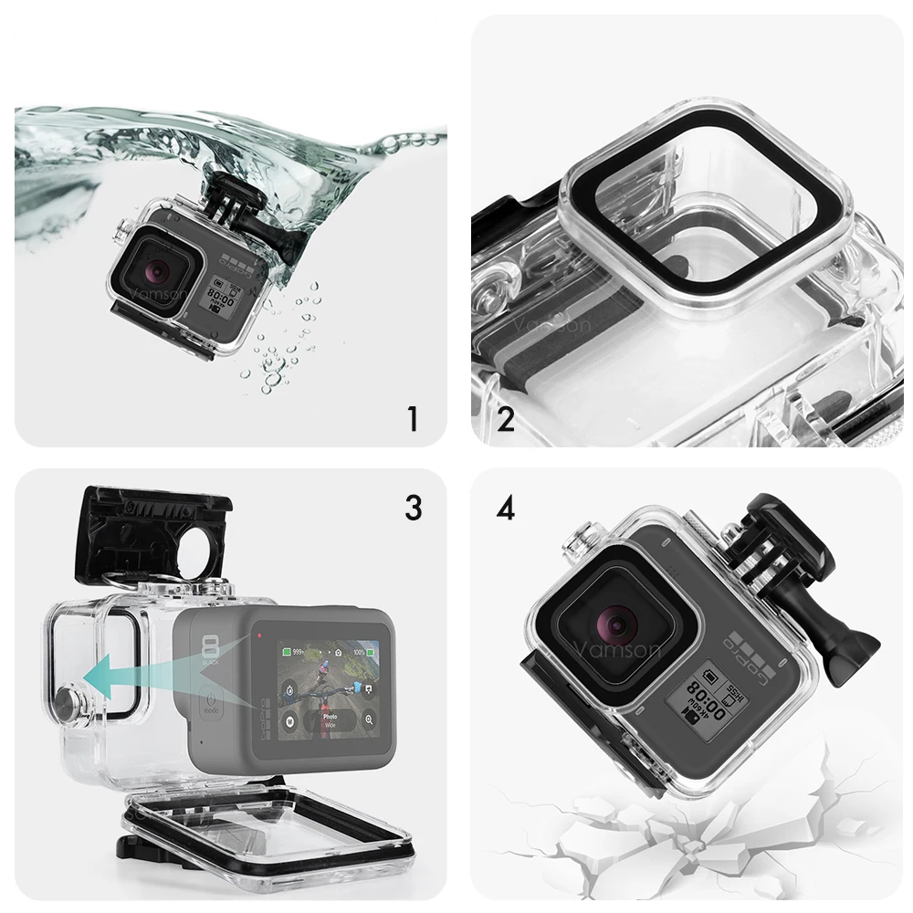 Водонепроницаемый чехол Vamson для подводной Камеры Gopro Hero 8, 7, 6, 5, черный, 45 м, крепление для корпуса для дайвинга, аксессуары для GoPro VP630