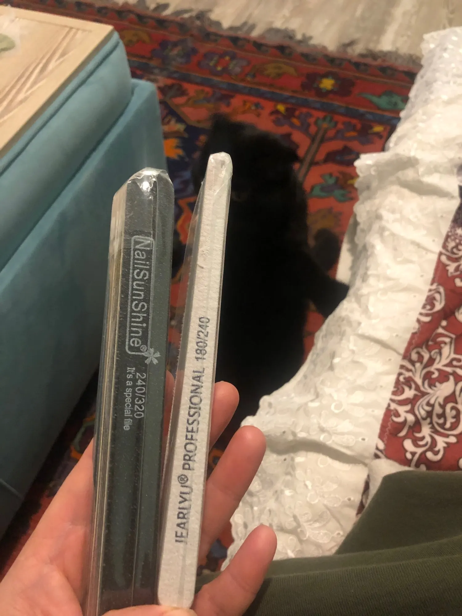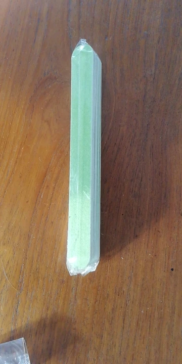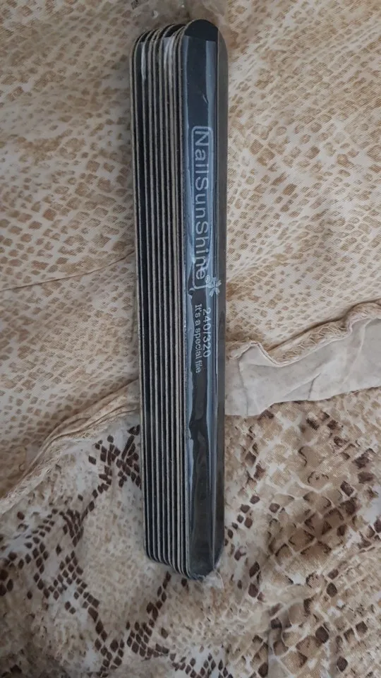 Продавец отправилась оперативно, до мск посылка шла около двух недель. Трекер не отслеживался. А вот зернистость не соответсвует((( заказала 240/320, а пришло 100/150. Чёрное - то, что прислали. Для сравнения рядом радужная пилка с зернистость 150/220. Разница очевидна.