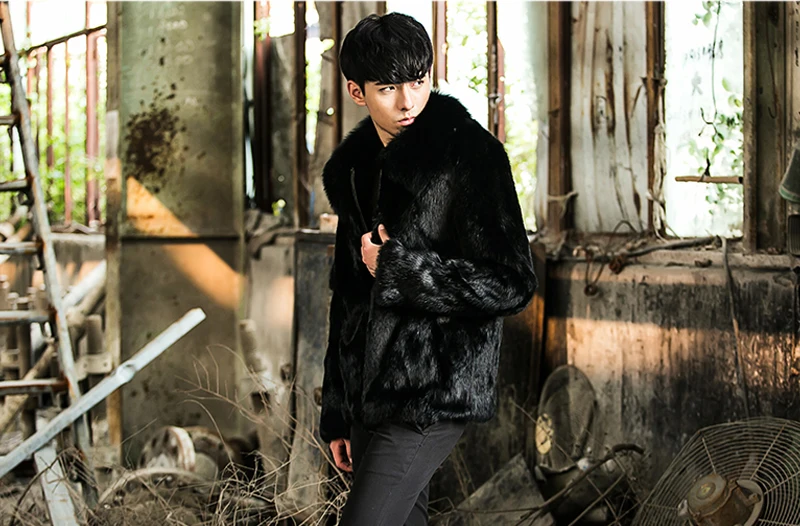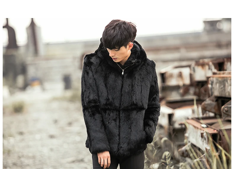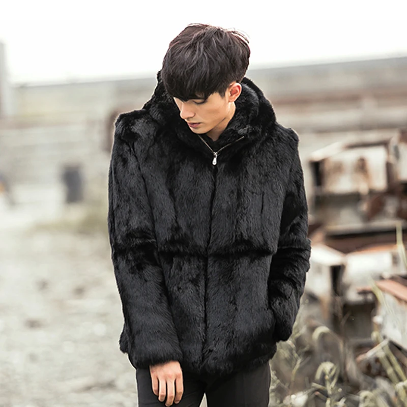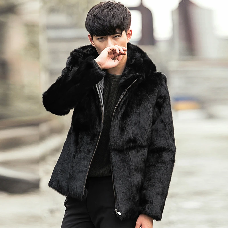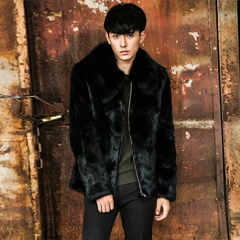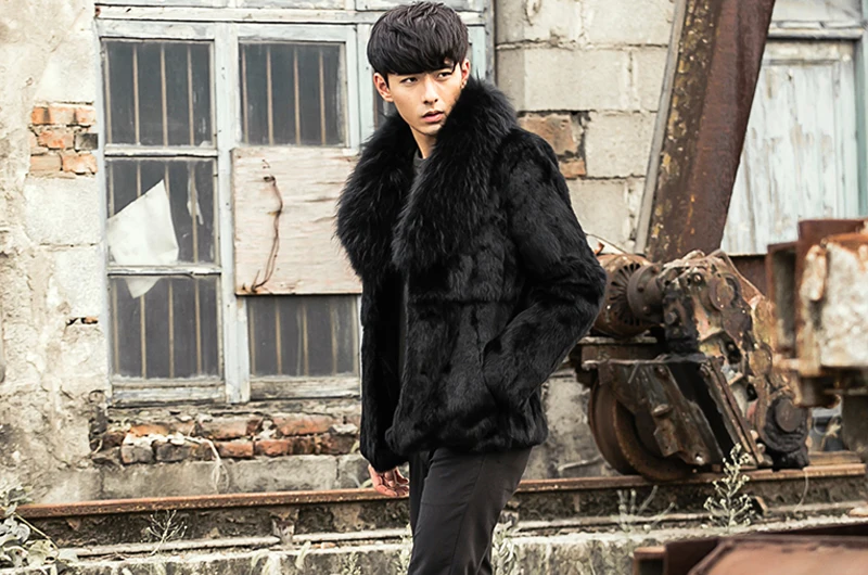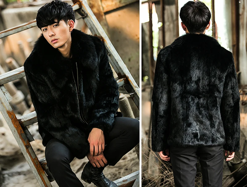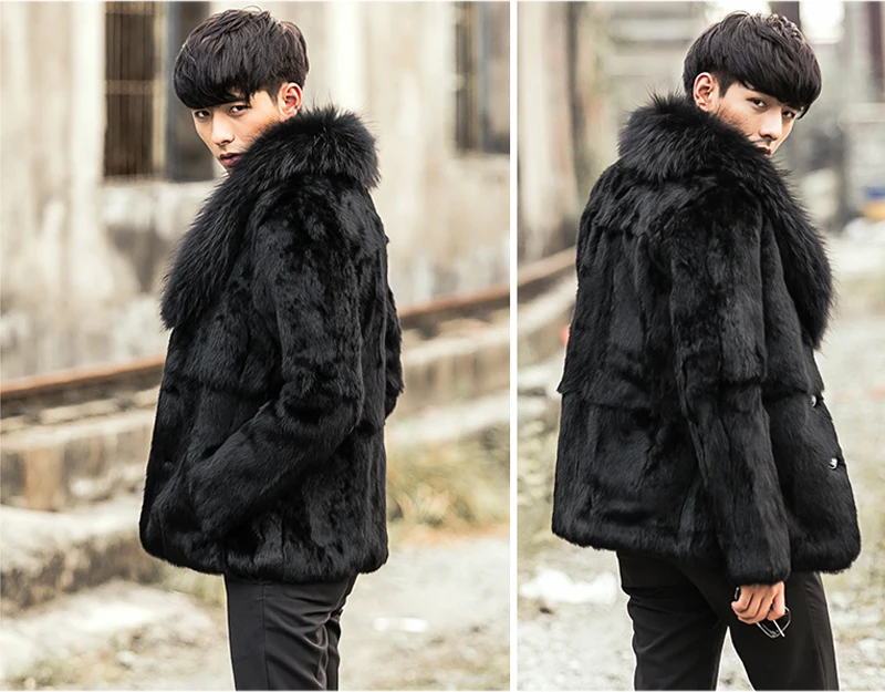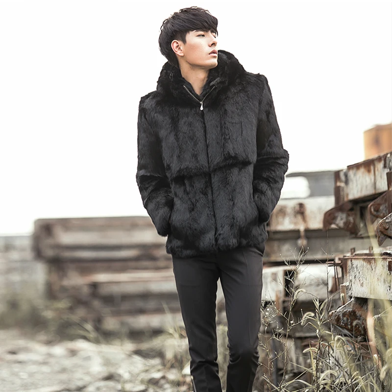 FURSARCAR черного цвета с мехом кролика бомбардировщик куртка с меховым воротником из меха лисы для мужчин, модные, натуральная зимняя с натуральным мехом плотные теплые пальто