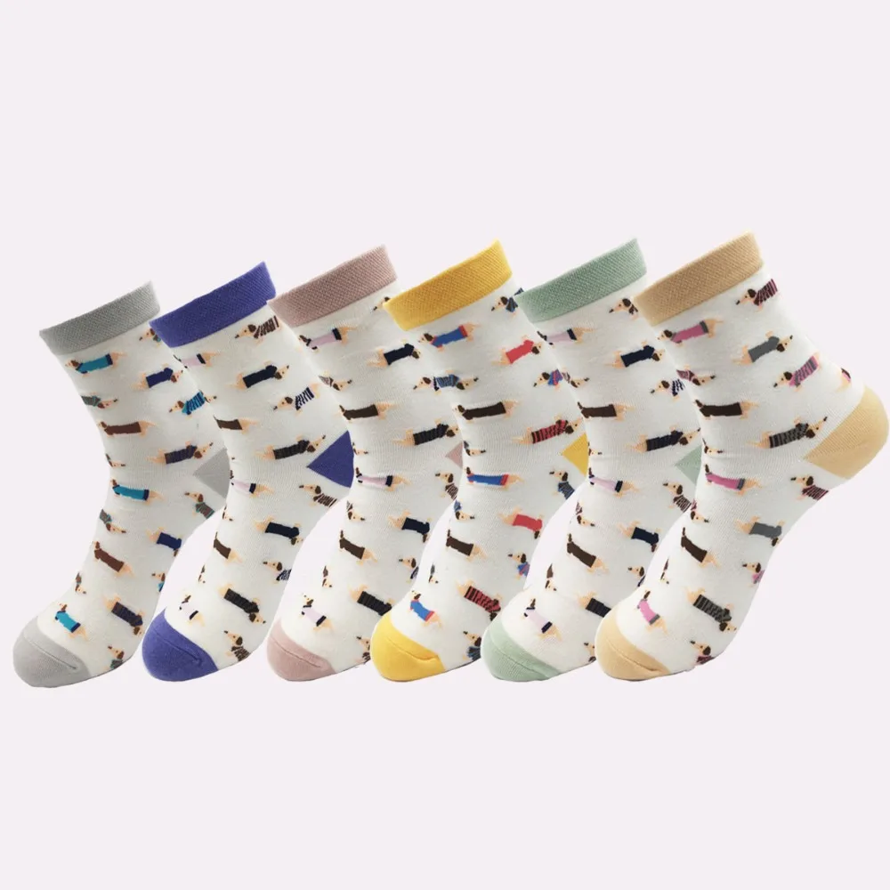 Носки женские, хлопковые, разноцветные, с изображением животных