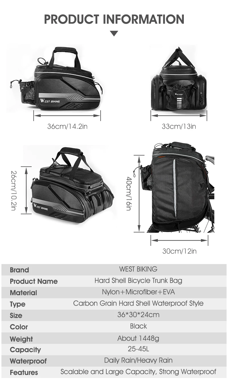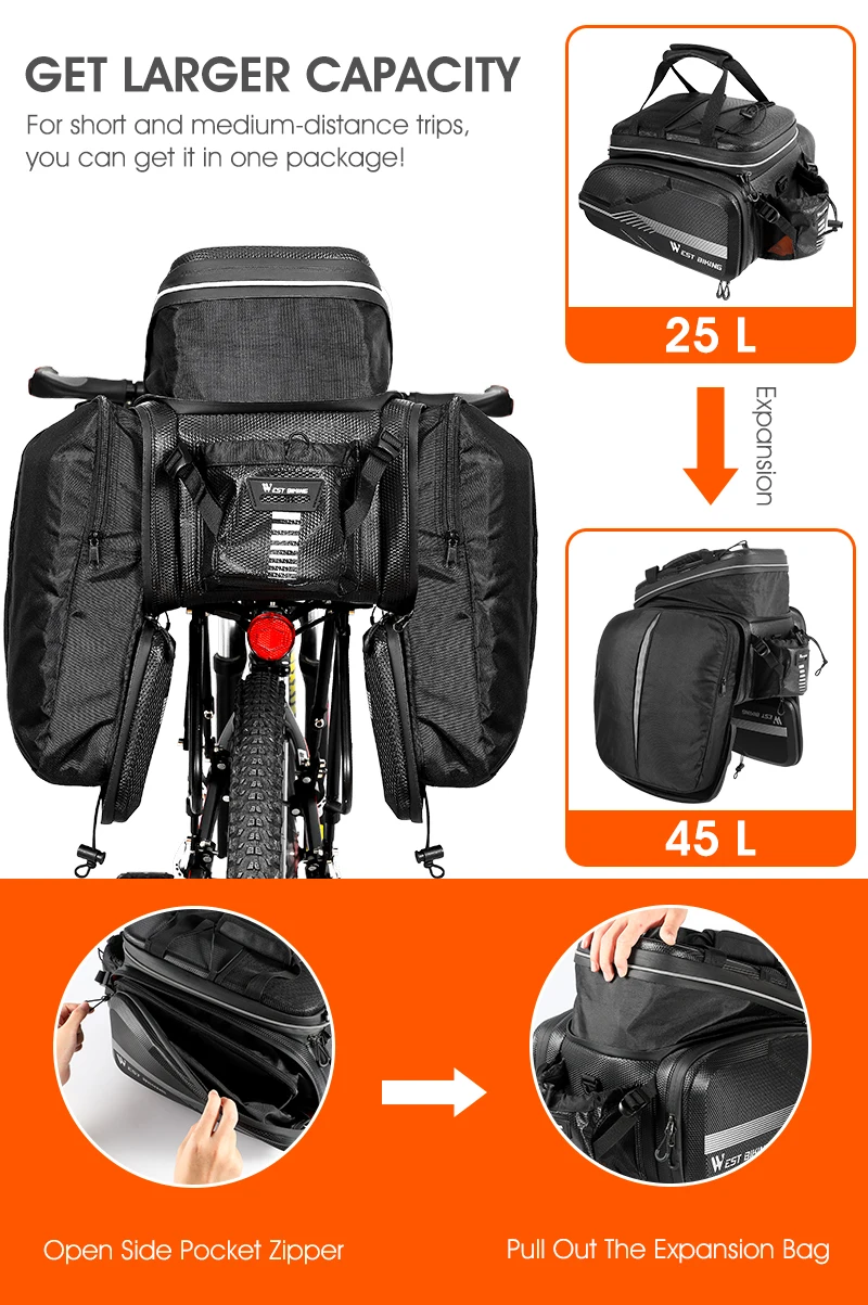 WEST BIKING, водонепроницаемая сумка для багажника велосипеда, MTB, для горного велосипеда, заднего сиденья, карго-перевозчика, багаж для путешествий, велосипедное седло