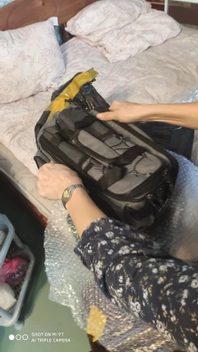 Посылка доставлена в Красноярск за 29 дней. Сумка компактная, но вместительная, ткань без стороннего запаха. Сшито качественно. Имеется защитный чехол от осадков, который убирается в специальный карман на наружной части дна сумки с фиксацией на липучке. « Штаны» собираются в боковые карманы. В комплекте имеется съемный плечевой ремень на пластиковых карабинах. Товаром доволен. Спасибо! Продавца рекомендую.