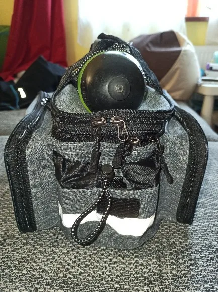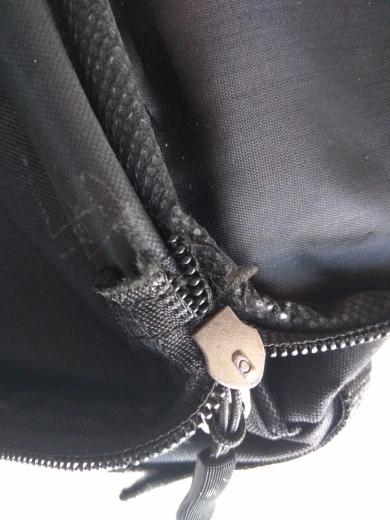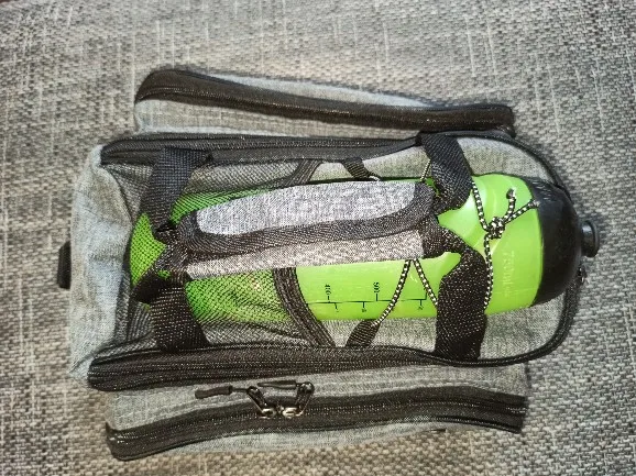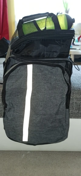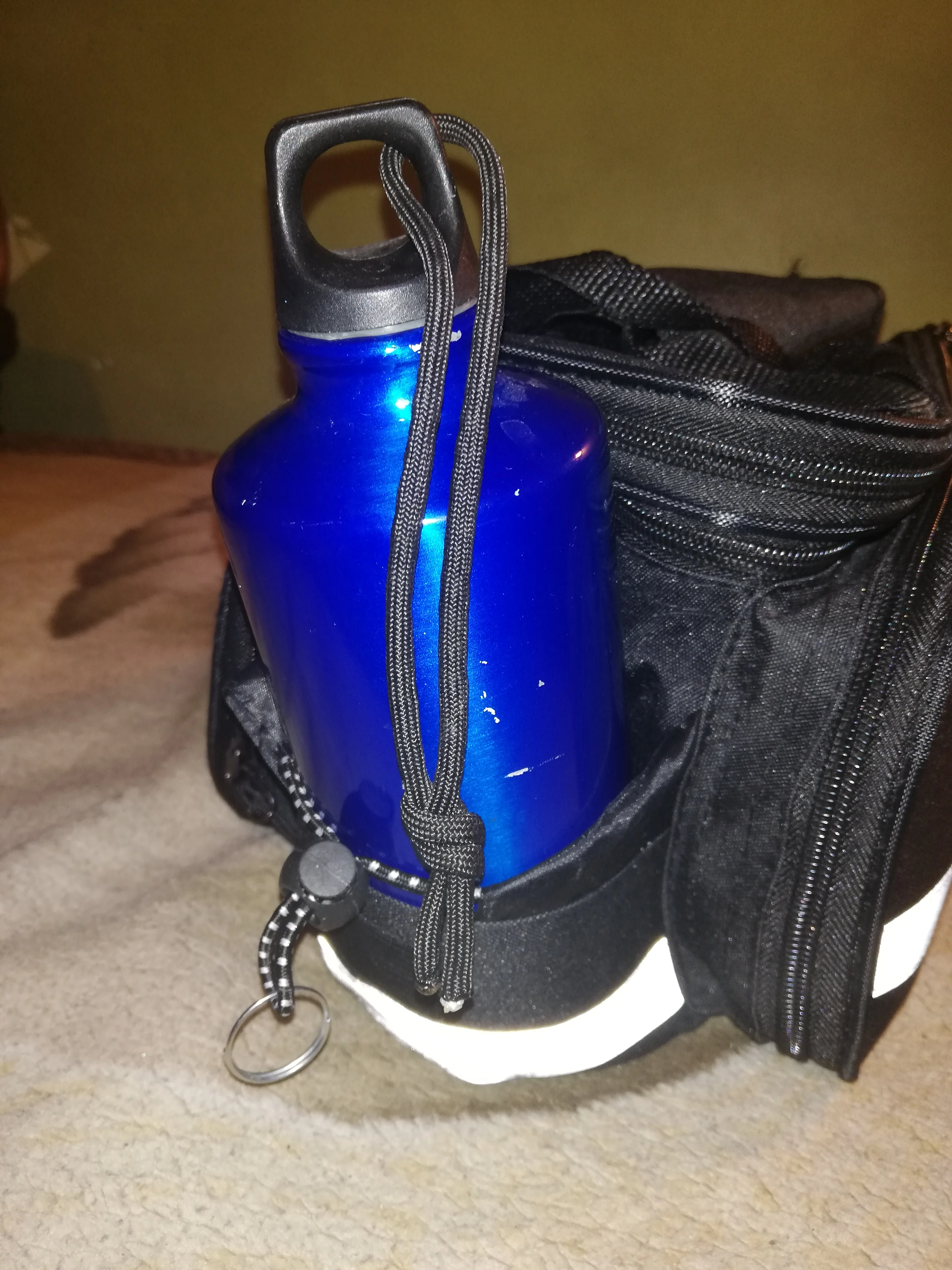 Torba fajna i użyteczna. Jak będzie z materiałem to się niestety okazuje później. Niestety jest kilka wad: stoper od gumki ściągającej kieszeń na butelkę jest niezabezpieczony i spada, kieszeń na butelkę jest mikroskopijna, jak widać na zdjęciu 0,5l butelka mieścci się w kieszeni 25% i jest totalnie niezabezpieczona przed wypadnięciem. Uchwyt spinający uchwyty, jest krzywo zszyty i wychodzą kawałki niezszytej tkaniny. Obok kieszeni z siatki są szlufki gdzie powinna być gumka zabezpieczająca rzecz wsuniętą pod siatkę, jak widać gumek nie ma.