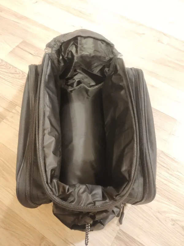Отличная сумка, хорошая вместимость, я кладу например термос 1л советский, запасные слои одежды, перчатки, велоаптечка, камера, насос, мультитул, фонарь. Внутри сумки в боковых карманах есть ещё одни карманы, которые свёрнуты, думаю их отрезать, т.к. они занимают место, но не пользуюсь - итак места хватает. Держится крепко, не слетает с багажника. В общем доволен, рекомендую