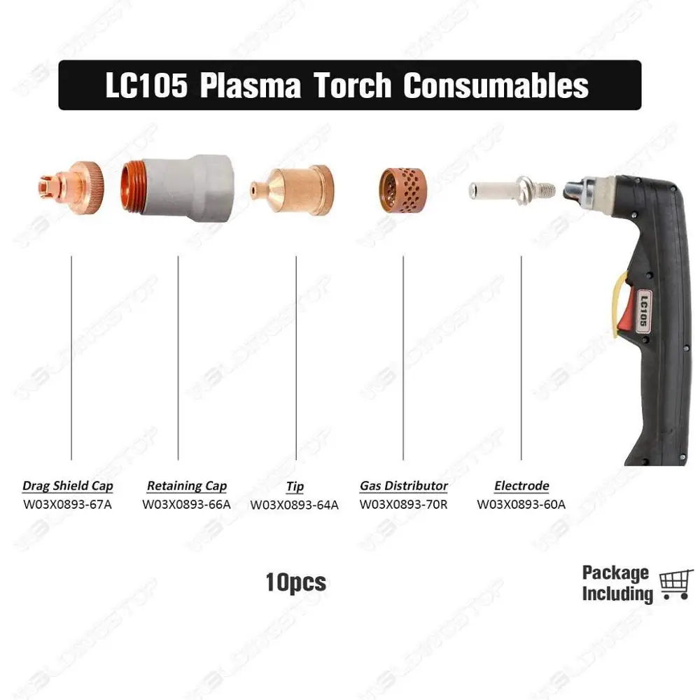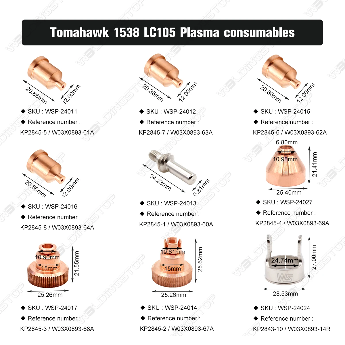 Электроды KP2845-1, W03X0893-60A 40-100A для резака Tomahawk 1538, LC105, плазменфонарь QTY-5 WS, послепродажное обслуживание