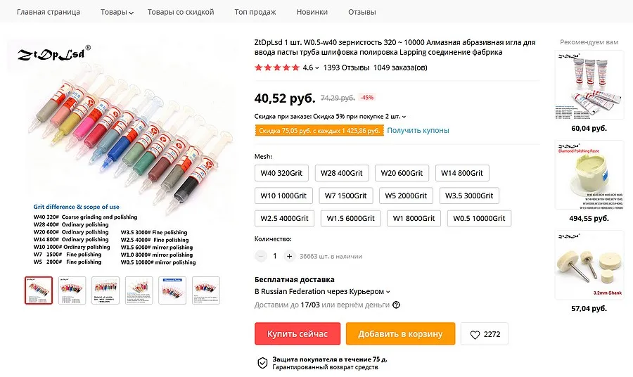 Страна: RU Mesh: W0.5 10000Grit Доставка: Seller's Shipping Method 21.01.2021