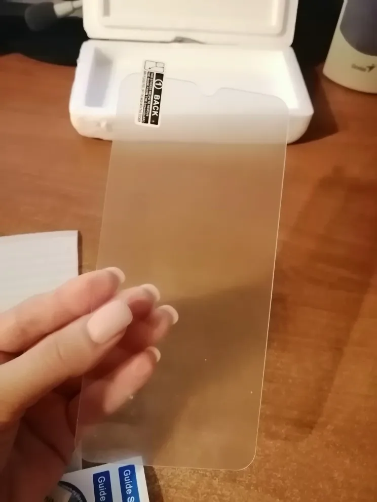 Вообще, я сначала очень удивилась, когда понятно, что стекло не так плотно прилегает к экрану, как обычно, но, оказалось, что так и должно быть, для этого нужно пользоваться специальной жидкостью, которая идёт в наборе. Безумно нравится стекло. Прослойки по бокам практически не заметны и не мешают смотреть. Выглядит чудесно и удобно в использовании. Отправили быстро, пришёл раньше с: