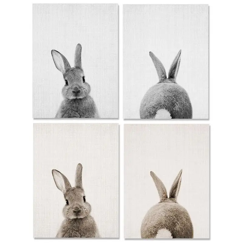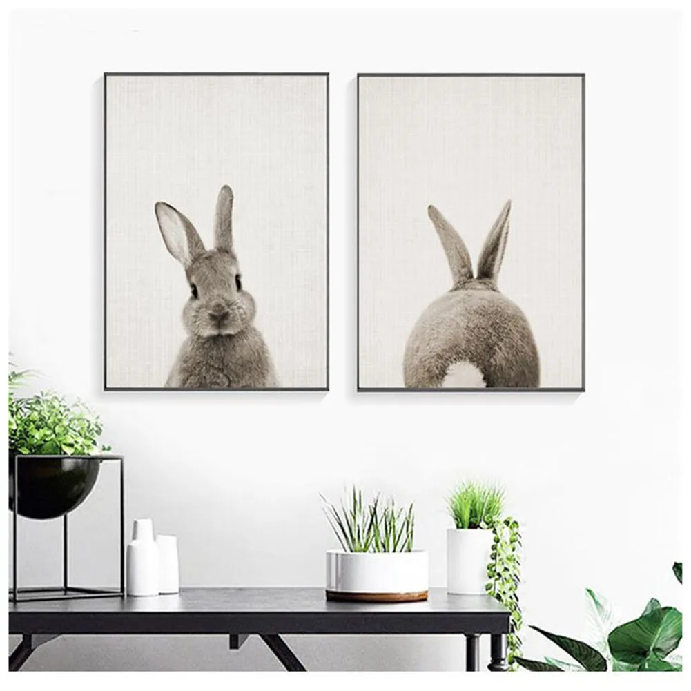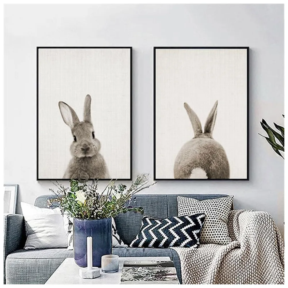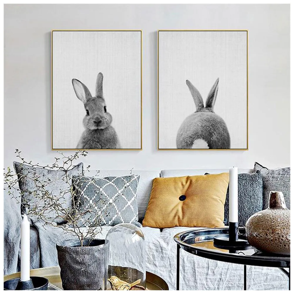 Черно-белая Картина на холсте с изображением кролика и хвоста для детской комнаты