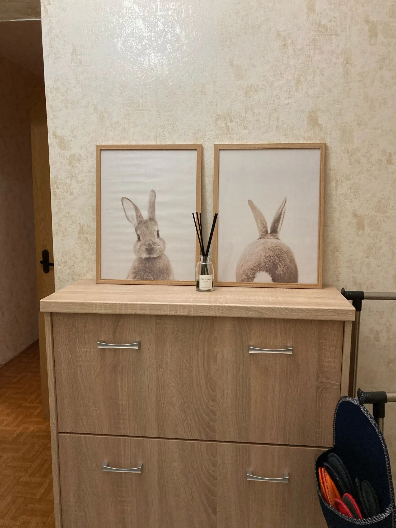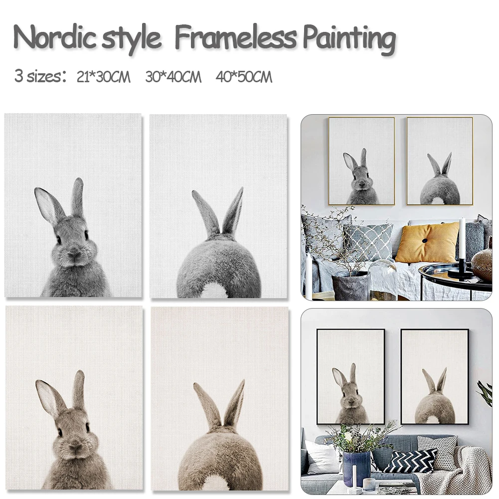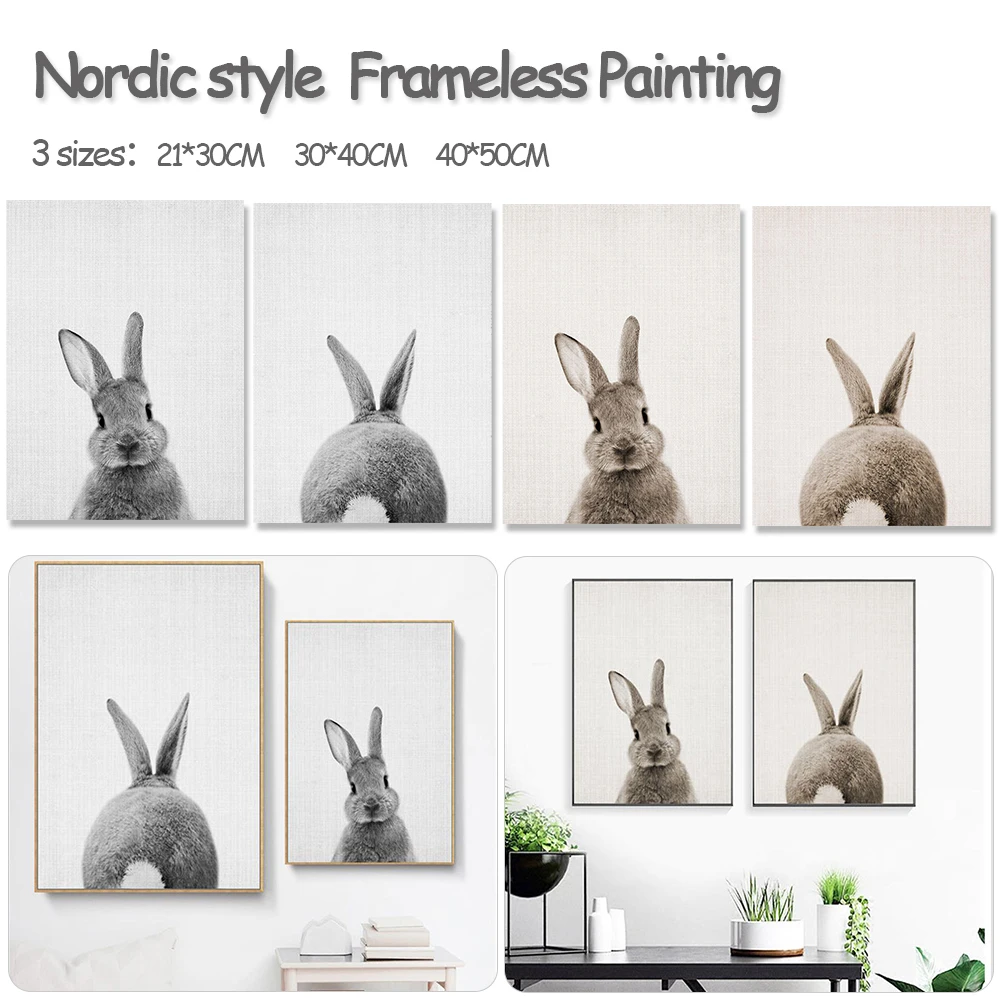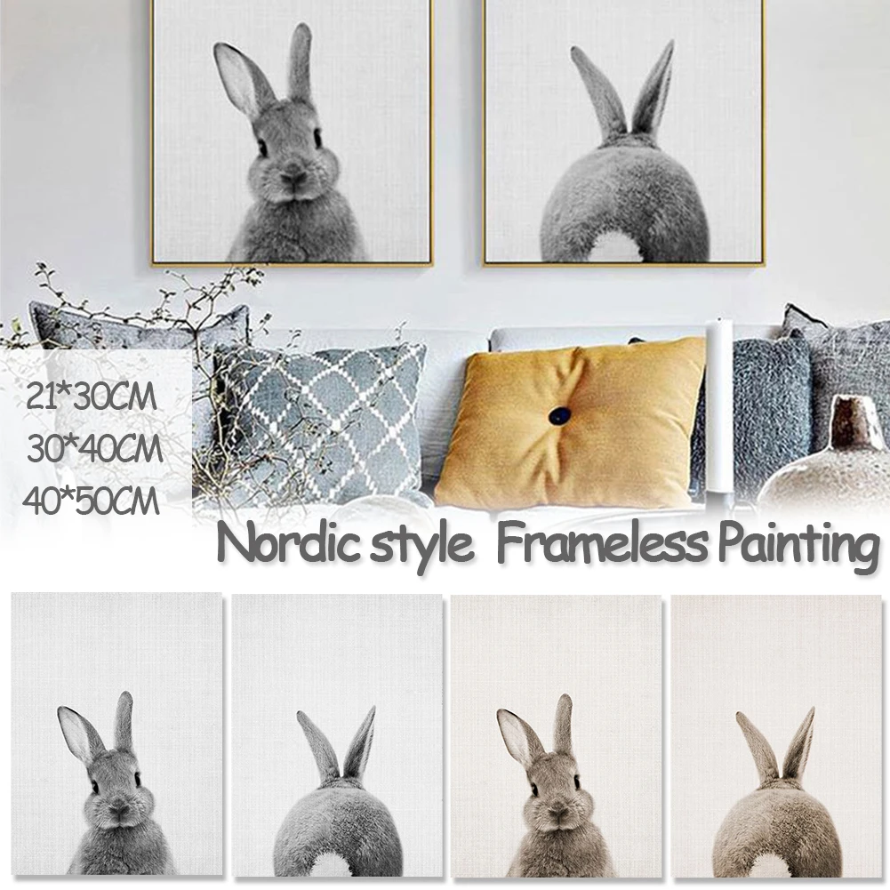 Черно-белая Картина на холсте с изображением кролика и хвоста для детской комнаты