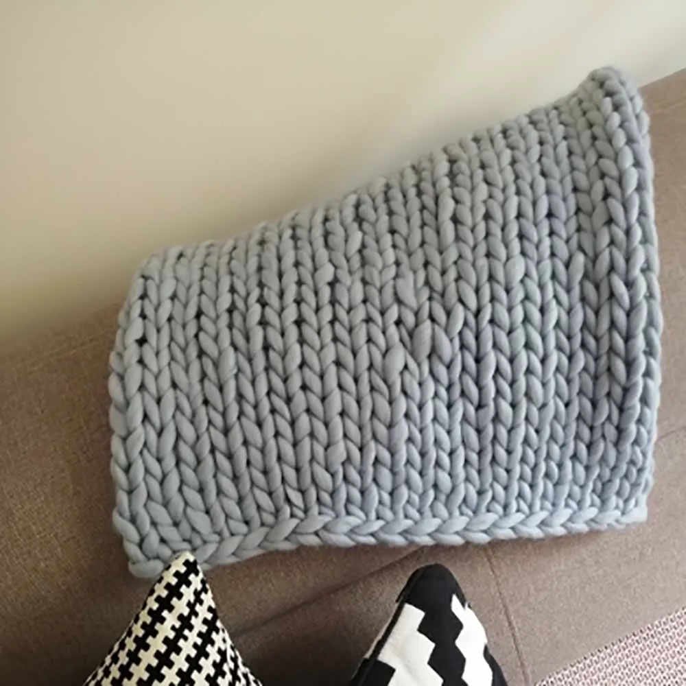 Вязаные пледы из полиэстера, толстая пряжа, похожая на шерсть, одеяло крупной ручной вязки, зимние, мягкие, теплые, Прямая поставка