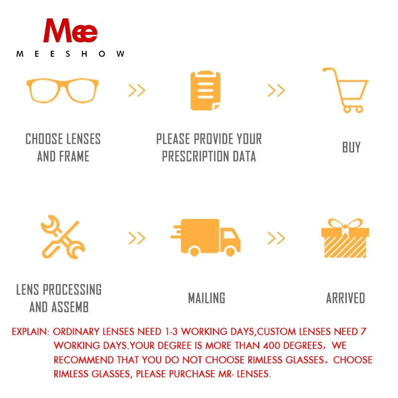 Примечание: линзы по рецепту под одним из четырех ниже условий относятся к индивидуальным объективам, фабрика линз должна изготовить линзы специально для вас, запросит дополнительную стоимость 10 или 20 долларов США. Спасибо за понимание!