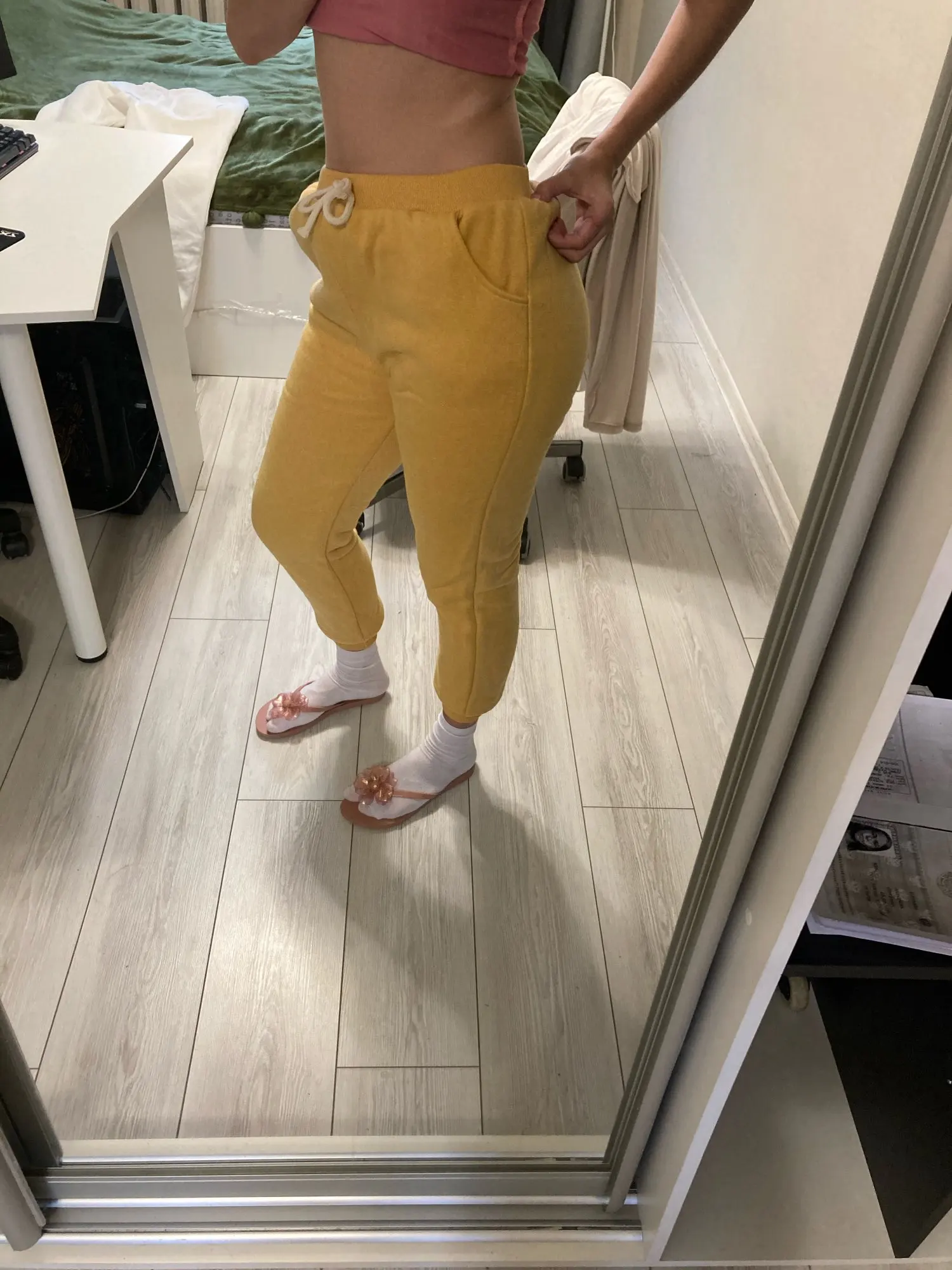 Третий брюки, которые я заказал. Это идеальный способ пережить зиму! Черный цвет является моим любимым, так как он имеет эффект похудения. Этот желтый цвет-это модный, слегка вымытый светло-горчичный желтый.