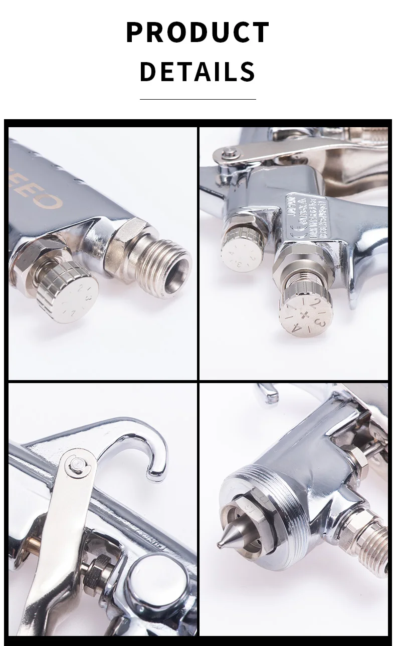 Все модели, расстояние распыления 200 мм.Вязкость 20 секунд/NK-2, отметьте 12 секунд/NK-2.Все модели, коннектор для краски G 1/4 Air connection G 1/4.Размер насадки: 0,8/1,0/1,3/1,5/1,8 ммРазмер распылителя: около 30 смСпрей давление воздуха: 3,0 до 4,0 бар