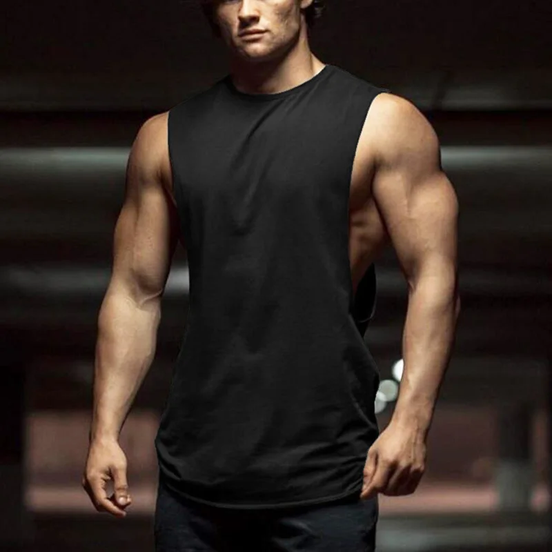 Майка мужская хлопковая для фитнеса, свободная майка без рукавов, п...