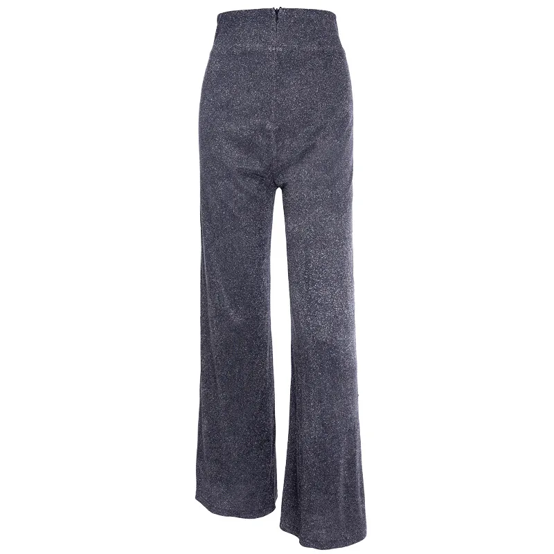 BOOFEENAA Серебристые блестящие широкие брюки с высокой талией, женские зимние брюки, пикантные повседневные брюки-клеш, праздничная Клубная одежда C66AB8