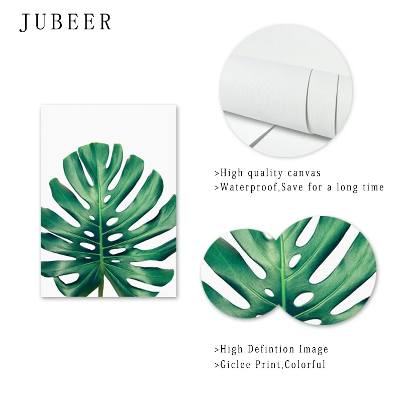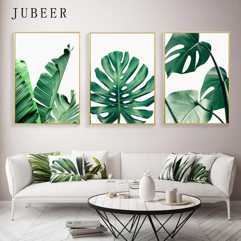 Зеленые листья настенная живопись холст Monstera Пальма банан плака...