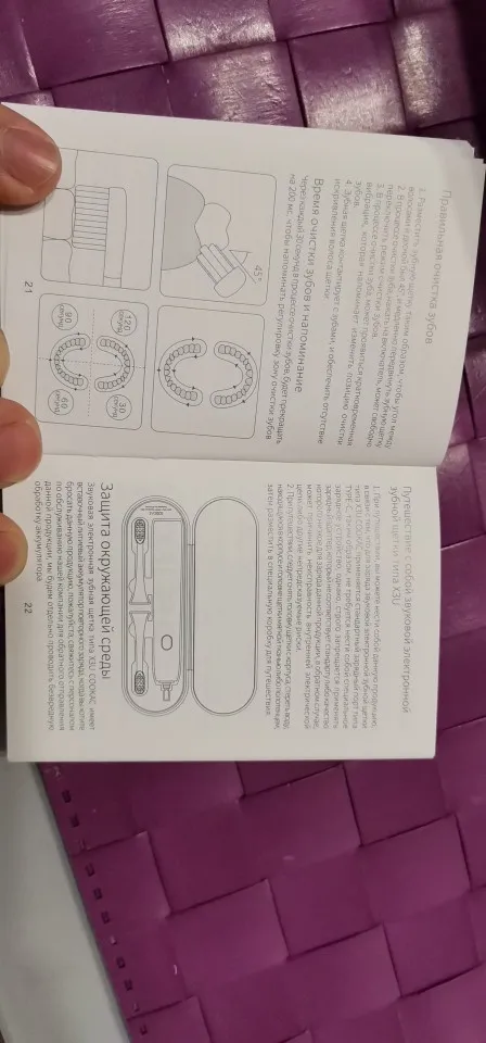 Доставка в наш медвежий угол 38го региона - 5 дней! Курьер привез до порога. Упаковка - обычный пакет. Внутри всё целое. Коробка не помята.Содержимое полностью соответствует описанию. Коробка в заводской слюде. Внутри есть инструкция на русском, хоть и с корявым переводом. Выглядит вполне качественно . Материалы тактильно приятные. Это моя первая электрическая щётка. Потестил, ощущения прикольные).