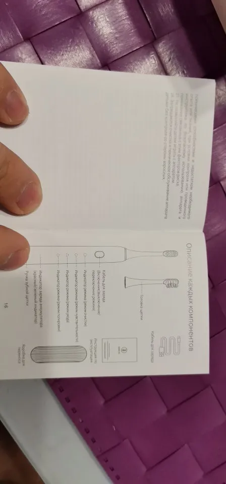 Добрый день. Захотел себе такую зубную щётку. Заказал 30 августа и через двадцать дней, благодаря "Почте РОССИИ" она моя. С продавцом не общался. Покупал за 2898,11 рублей с учётом скидки продавца. Пришла в обычном пакете. Коробка помята была, но внутри все целое. Комплектность на фото. В руке держать удобно, посторонних запахов нет. Пришла с заряженный аккумулятором, гнездо зарядки Tipe-C. Четыре режима работы переключается единственной кнопкой. После того как попробую её в работе дополню отзыв. И так..... Быстрая доставка На первый взгляд качество хорошее Мне нравится Рекомендую товар и продавца До новых встреч!!!!!