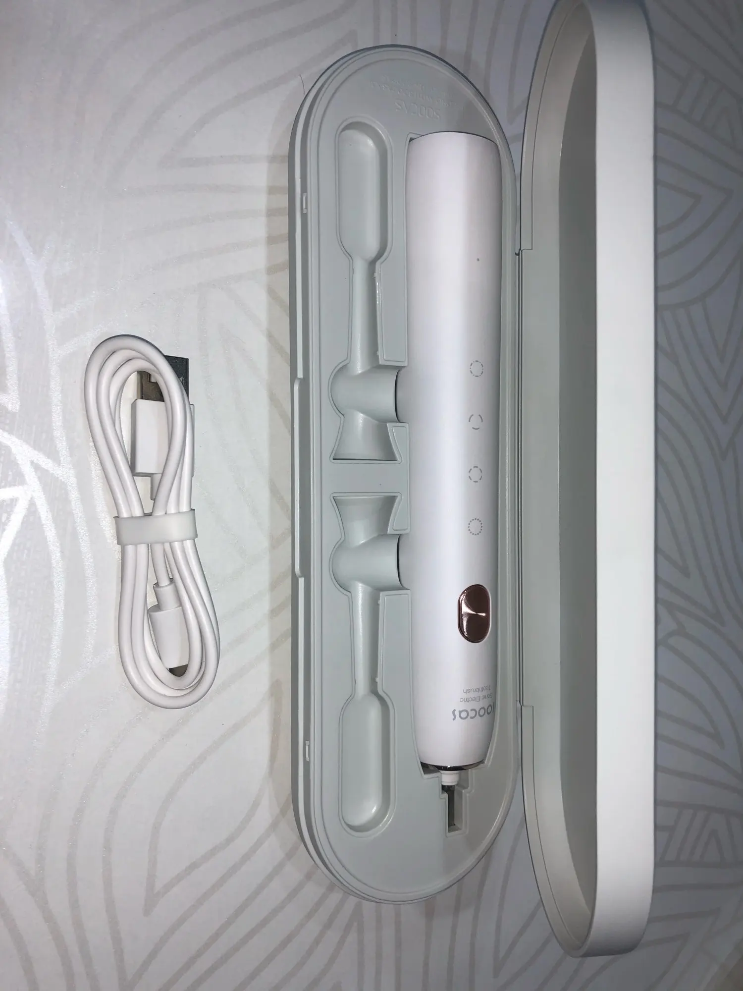 Зубная щетка пришла expresowo. По сравнению с первой моделью зубной щетки sonicznej Soocas с Bluetooth (X3) она не имеет дополнительных 30 секунд после 4 циклов. Качество изготовления плохое, но и так далее на высоком уровне. Как правило, за эту цену рекомендуется.