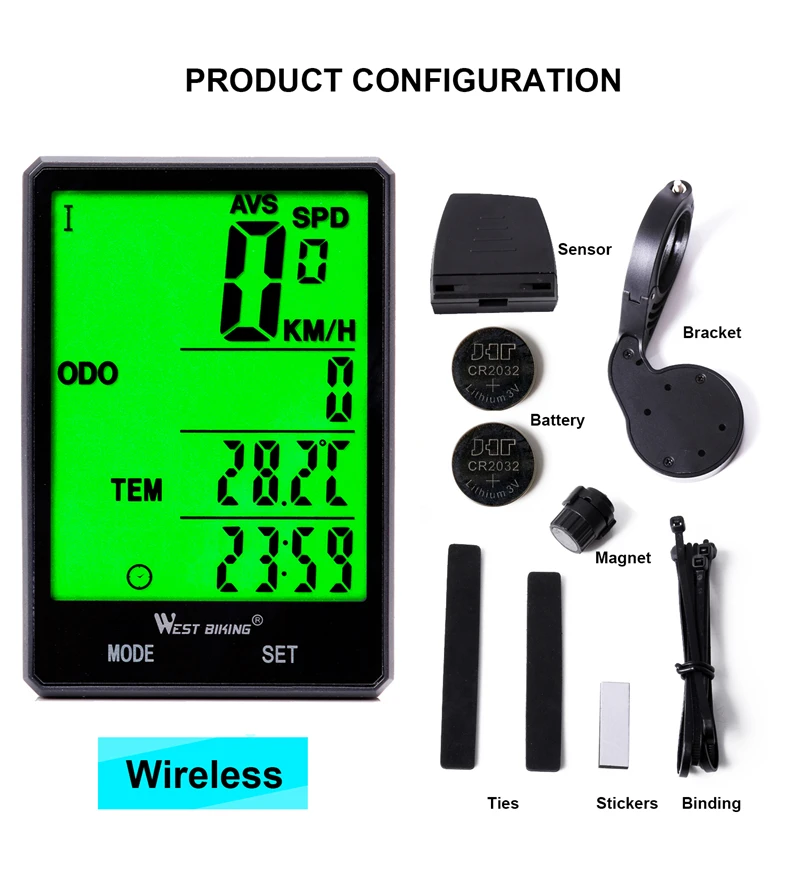Компьютер велосипедный, WEST BIKING, беспроводной, водонепроницаемый, с одометром, секундомером, Спидометр с фоновой подсветкой