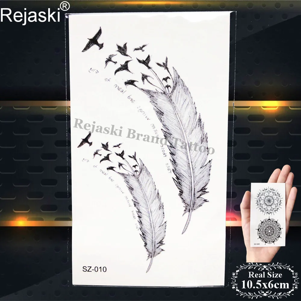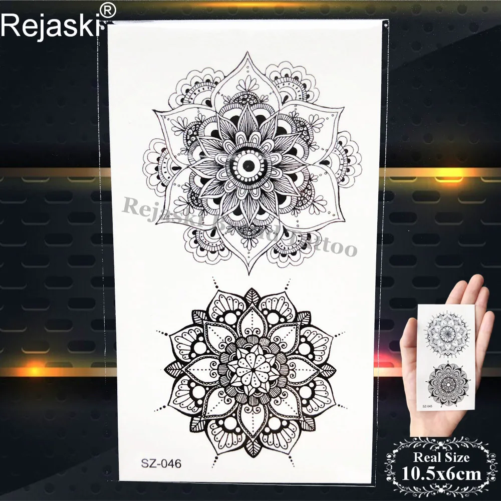 Rejaski черная мандала цветок временные татуировки наклейки Женщины хна тотем рука фальшивые татуировки девушки маленькое перо водостойкая татуировка