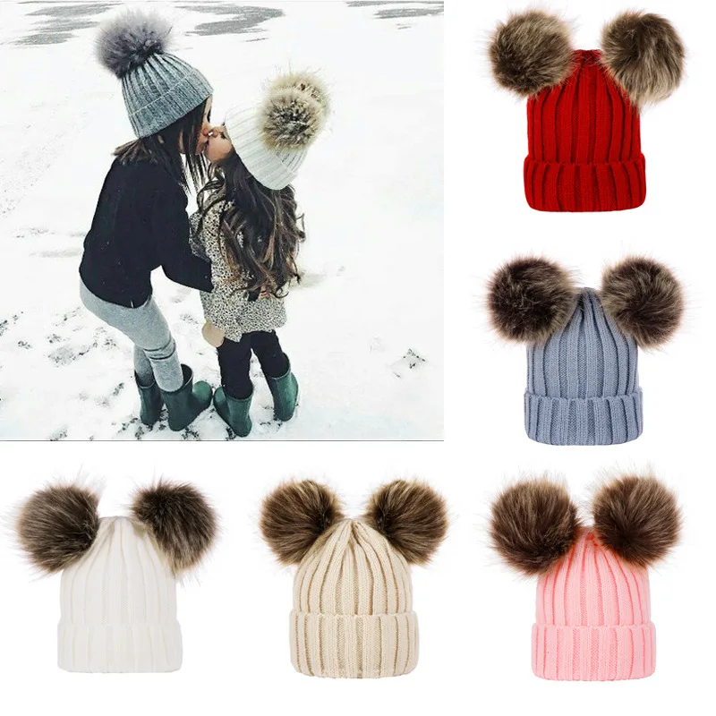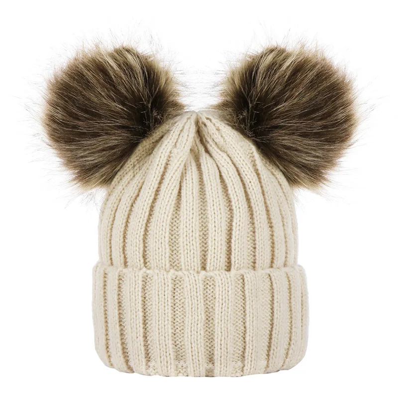 Детская Вязаная Шапка-бини с двумя помпонами, для мальчиков и девочек
