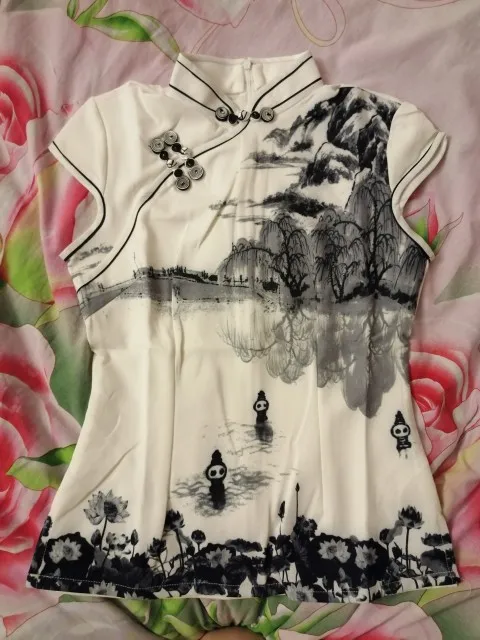 2018 Модная рубашка в китайском стиле женская блузка с воротником-стойкой женская одежда Чонсам летнее короткое платье Ципао Размер S-XXXL