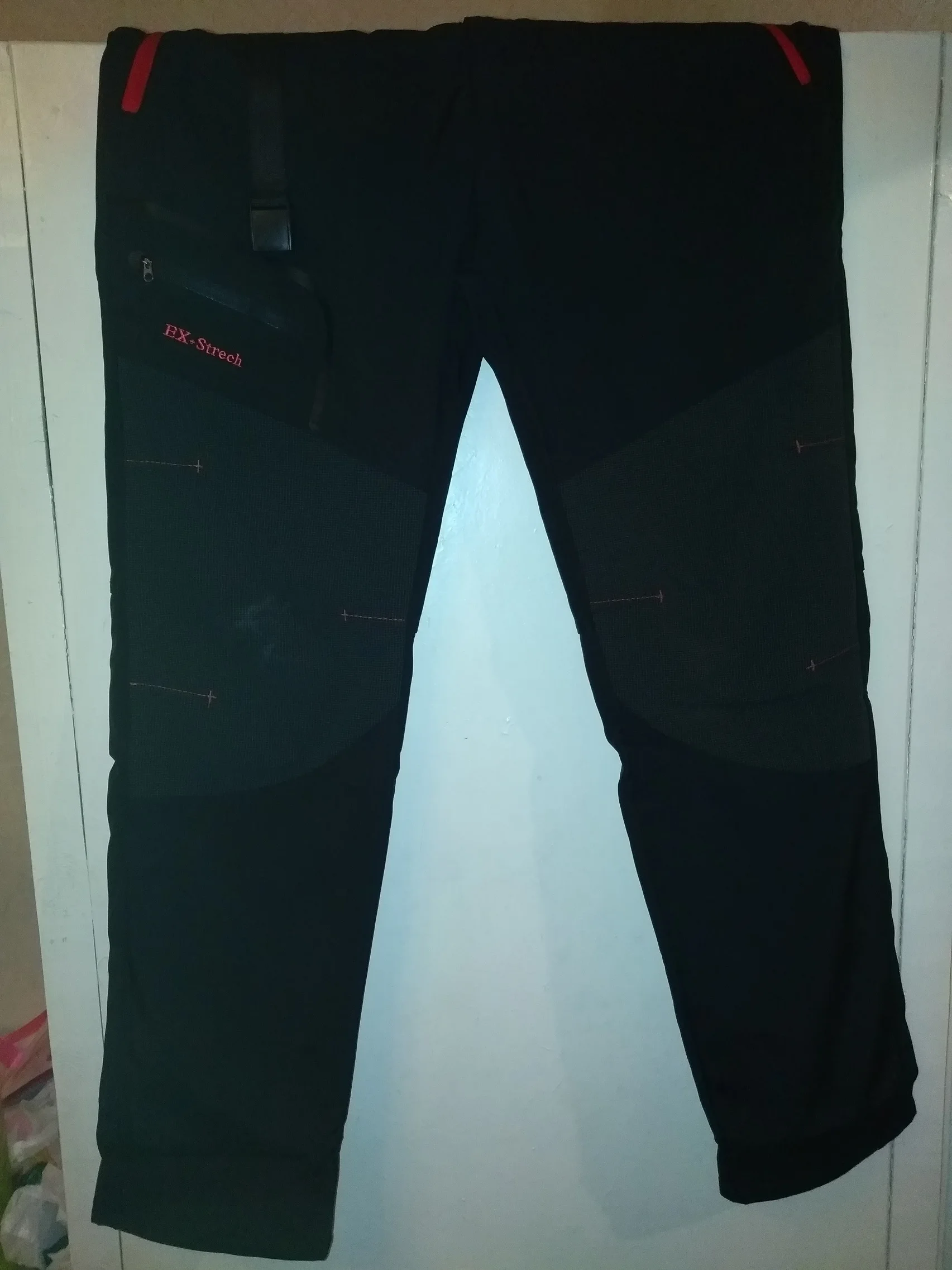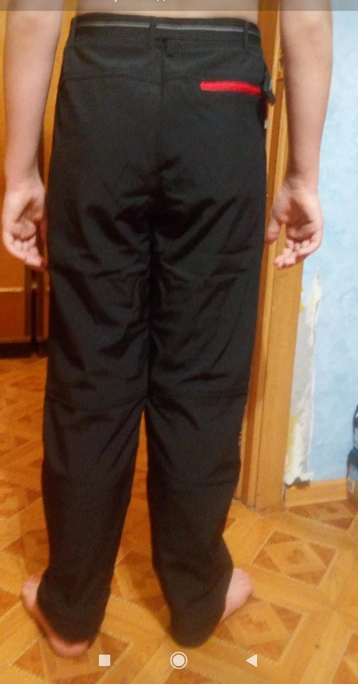Брюки понравились. На рост 185 см, вес 93 кг продавец посоветовал размер 4 xl и размер действительно оказался в пору . В поясе по бокам вставлены резинки , что тоже очень удобно , порадовал стрейч вставки на коленях , не много не понравились надписи сбоку , но это не сильно критично ( но без них брюки смотрелись бы лучше) .