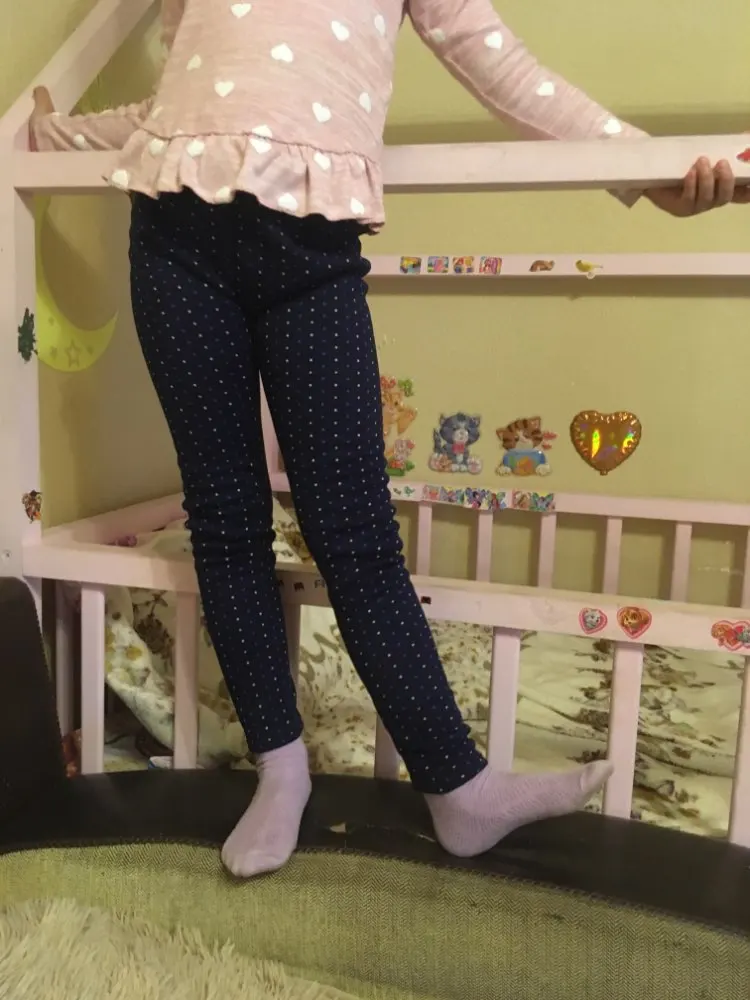 Доставка быстрая, пришли на постамат, заказывала 6 и 7 . И хотя на обоих лосинках стоит рост 130 , по длине они разные. Нам 4,5 года, рост 110 , - 6 села отлично с небольшим запасом ,7 чуть длиннее, так и хотелось.