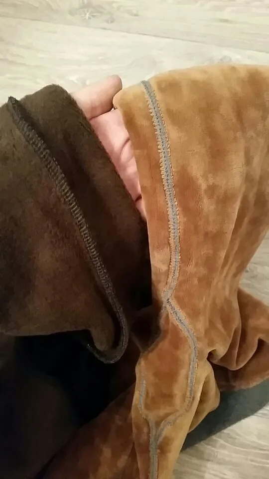 Беру у этого продавца уже второй раз...в этот раз заказала две пары...эти и еще одни. У этой модели мех пожиже. Не для зимы..но для межсезонья в самый раз.Синтетика конечно..но теплая и мягенькая ( сама в подобных гоняю) Швы ровные, запаха нет, отправил молниеносно. Пришли быстро! Все точно как на фото! Первый штанишки отслужили два года..не сели не закатались не полиняли!!!Рекомендую. Продавец надежный.