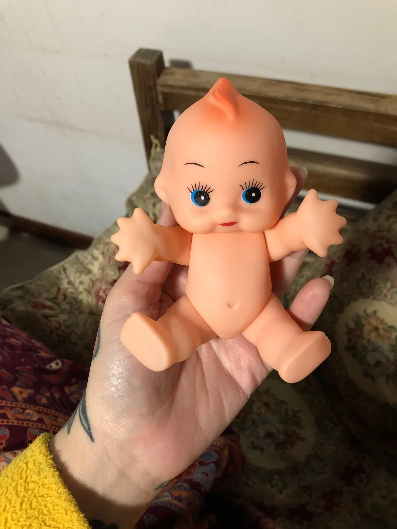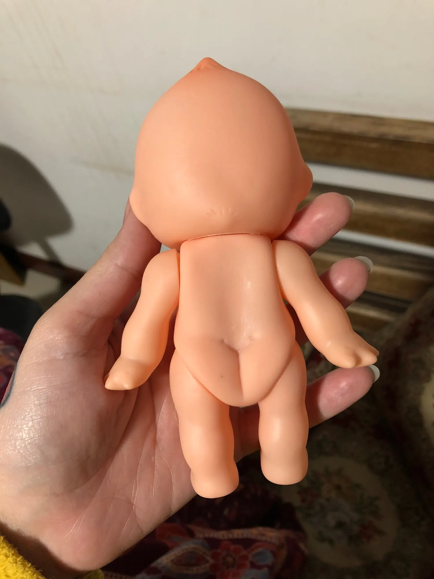 Средне, конечности слетают от лёгкого нажатия. Ошметки производства на руках и ногах. Рука на фото скорее детская. Кукла маленькая