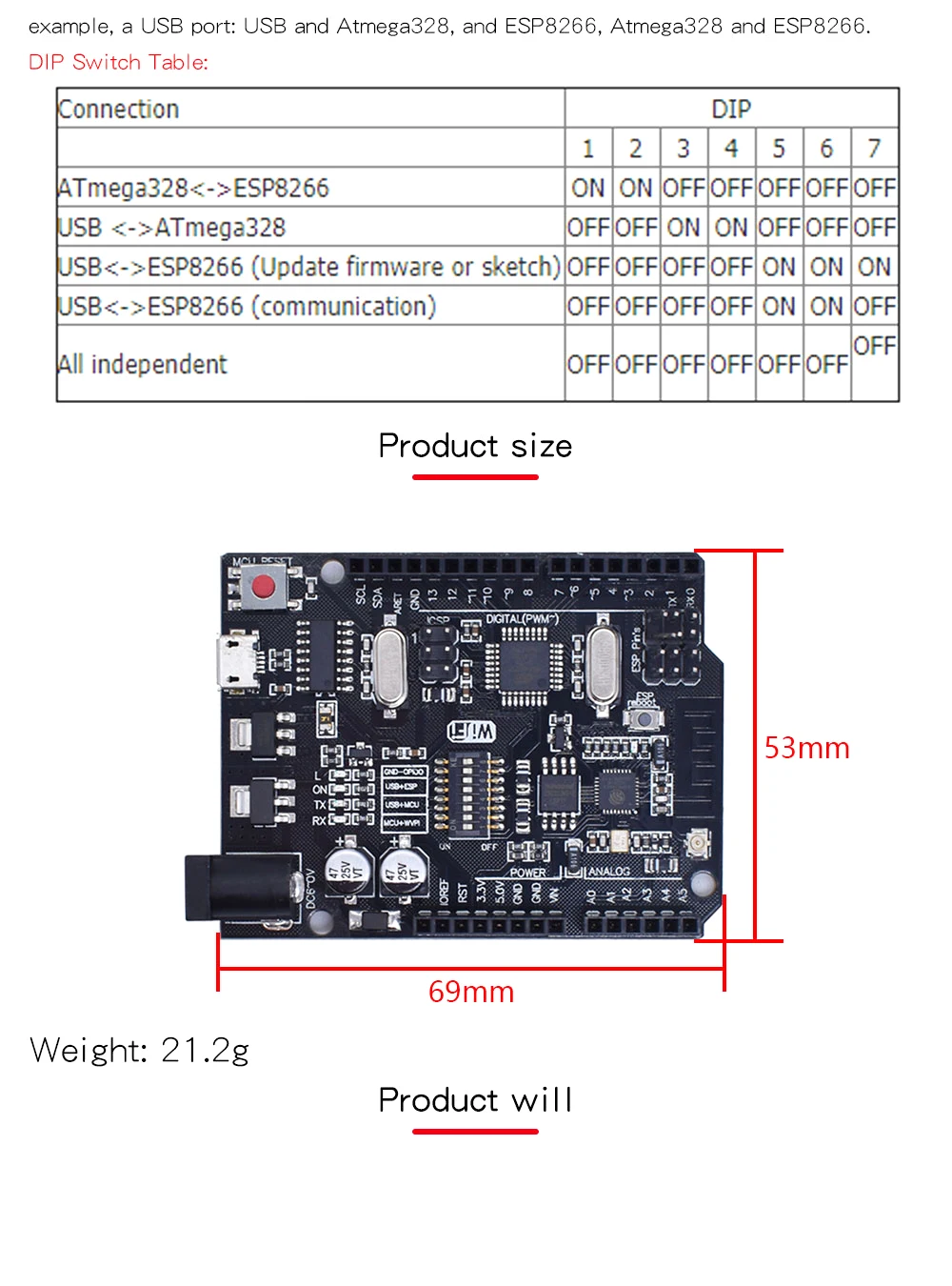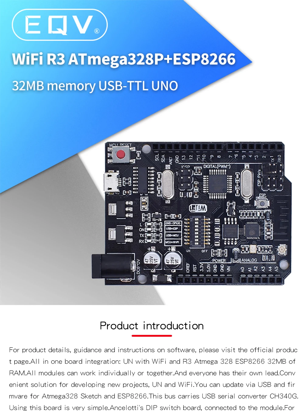 Контроллер NodeMCU WeMos ESP8266, UNO R3 + WiFi ATmega328P + ESP8266 (32 Мб памяти) USB-TTL CH340G для Arduino Uno