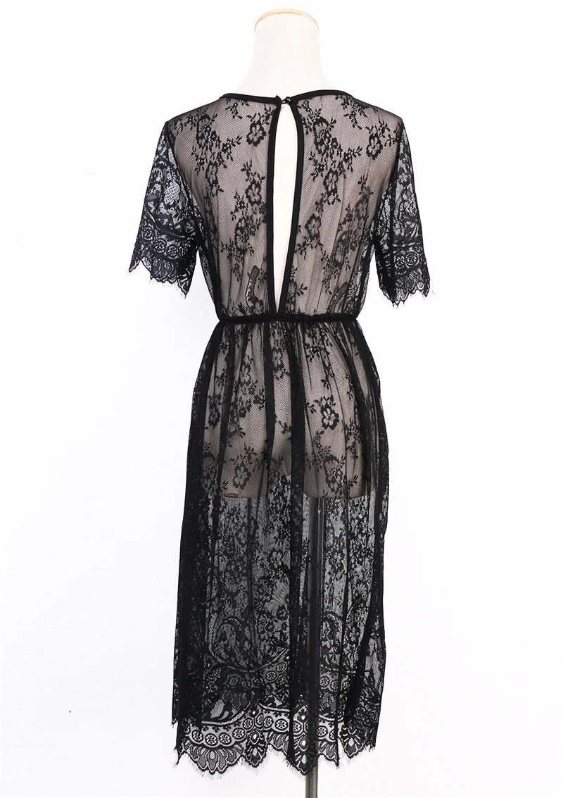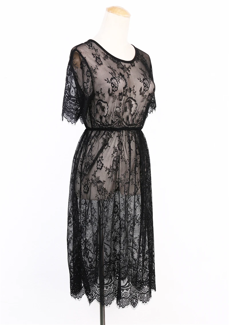 Платье женское кружевное Сетчатое, пикантная пляжная одежда в стиле бохо, с коротким рукавом, ТРАПЕЦИЕВИДНОЕ пляжное платье, лето