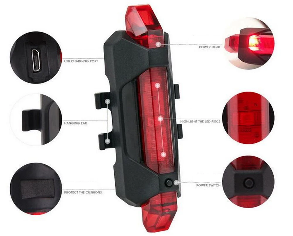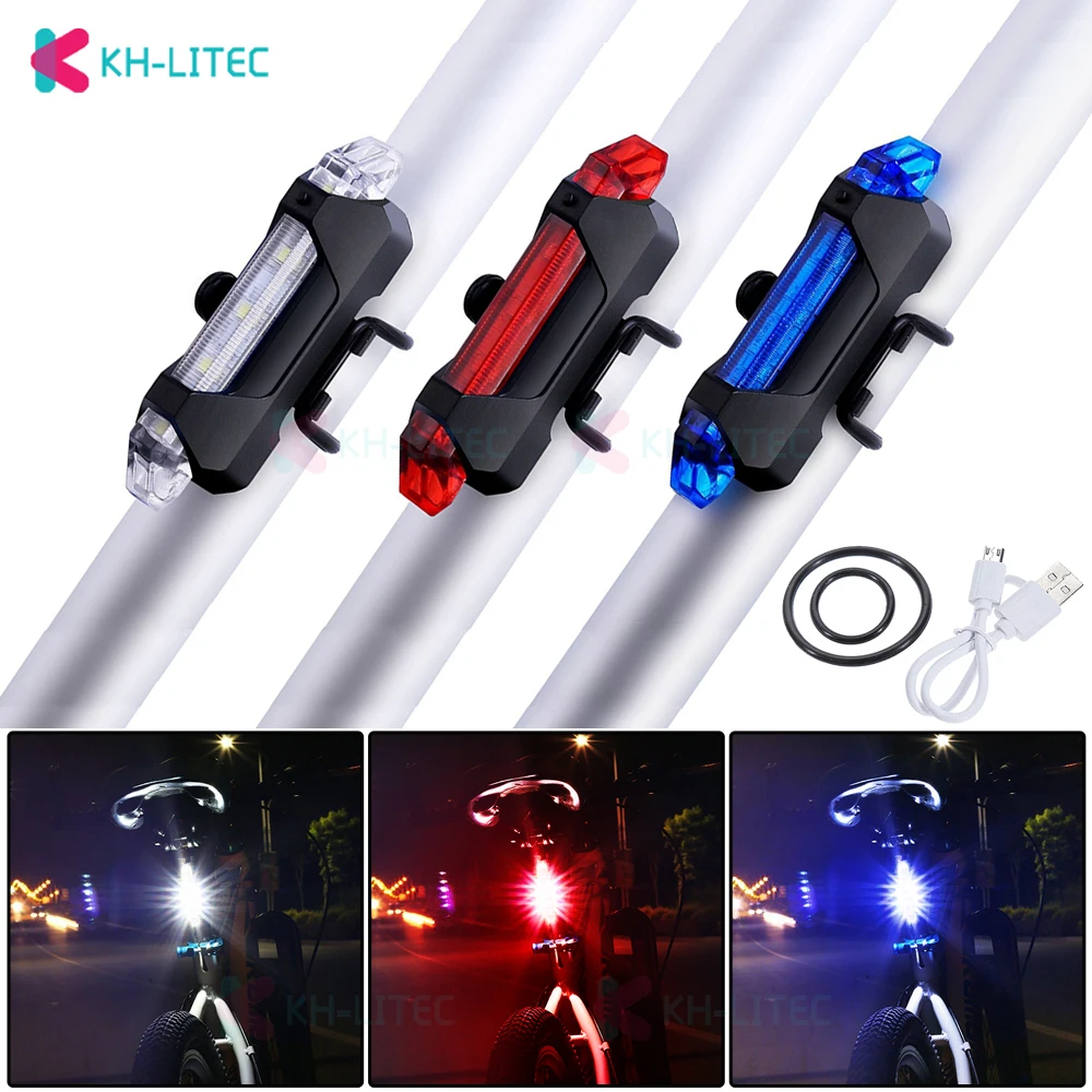 KHLITEC велосипедный задний светильник USB Перезаряжаемый 5LED задний светильник безопасность заднего хвоста Предупреждение ющий велосипедный задний светильник портативный флэш-светильник