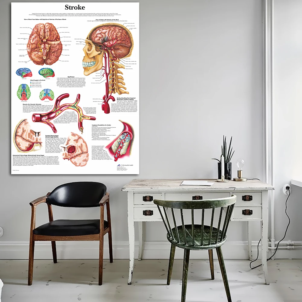 Анатомическая карта мозга в движении, неврологические плакаты, патология, холст, настенные картины для медицинского образования, домашний декор