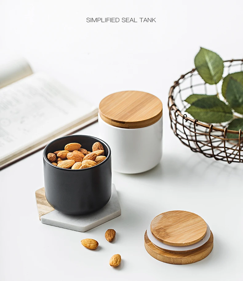 Набор керамических бутылочек для специй, чая, кофе, сахара, запечатанные банки и бамбуковая крышка, домашняя кухонная для хранения