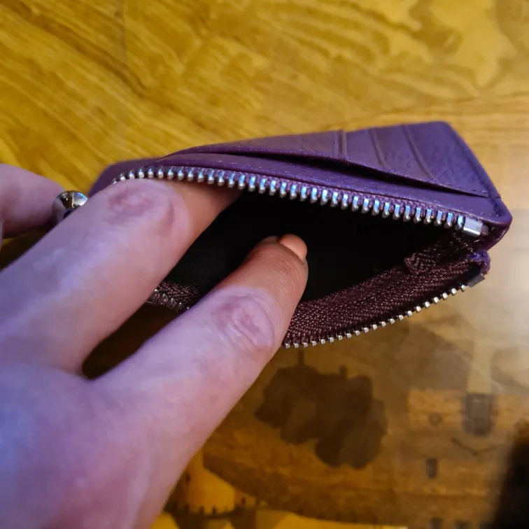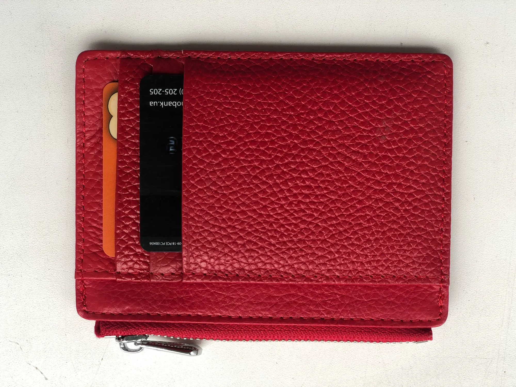 Получено за 12 дней с комбинированной доставкой. Карты легко входят. Молния на кошельке хороша.