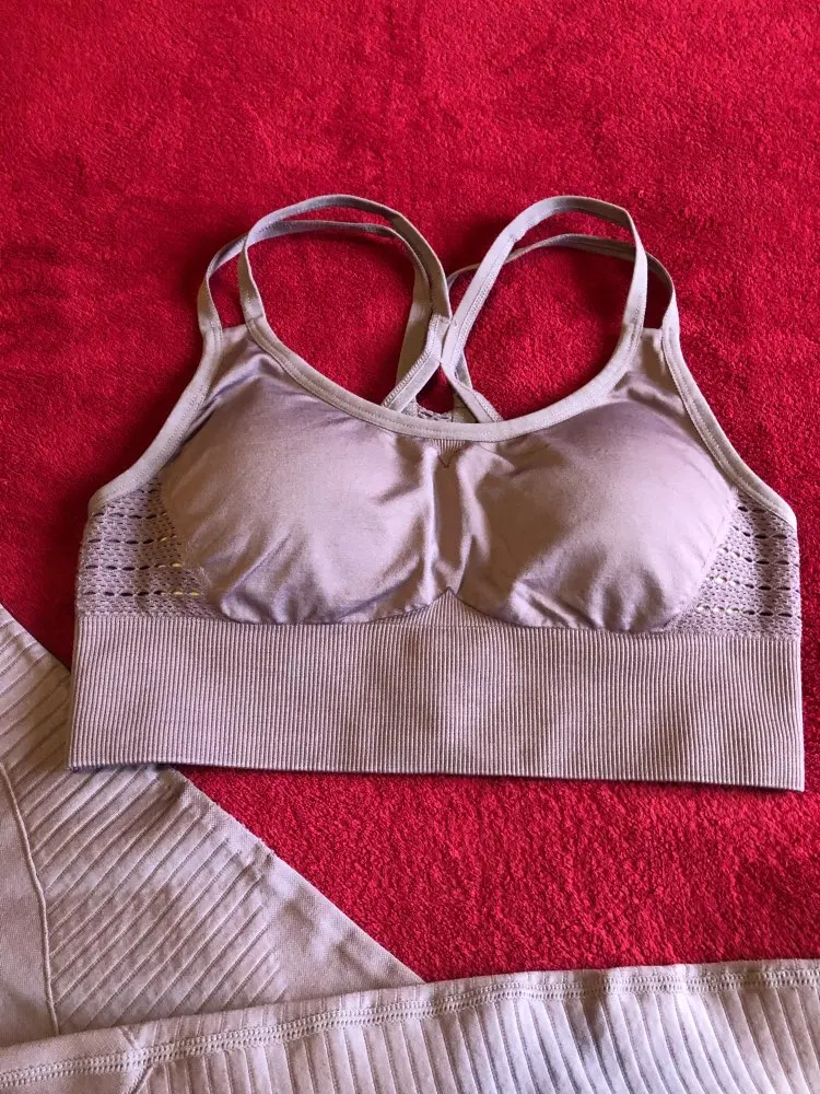 Спортивная одежда для женщин, бесшовный спортивный костюм для йоги, фитнеса, тренажерного зала из двух предметов: леггинсы, бюcтгальтер на бретельках с эффектом пуш-ап