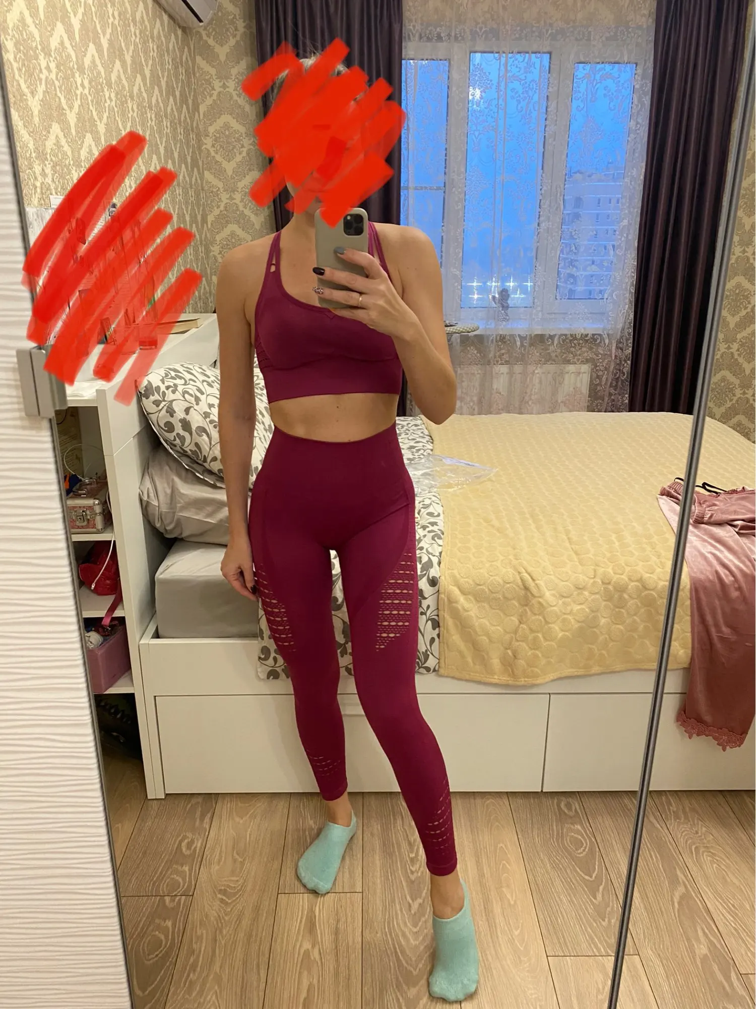 обалденный костюм. думала буду дома в нем ходить, но для зала тоже прекрасно)
