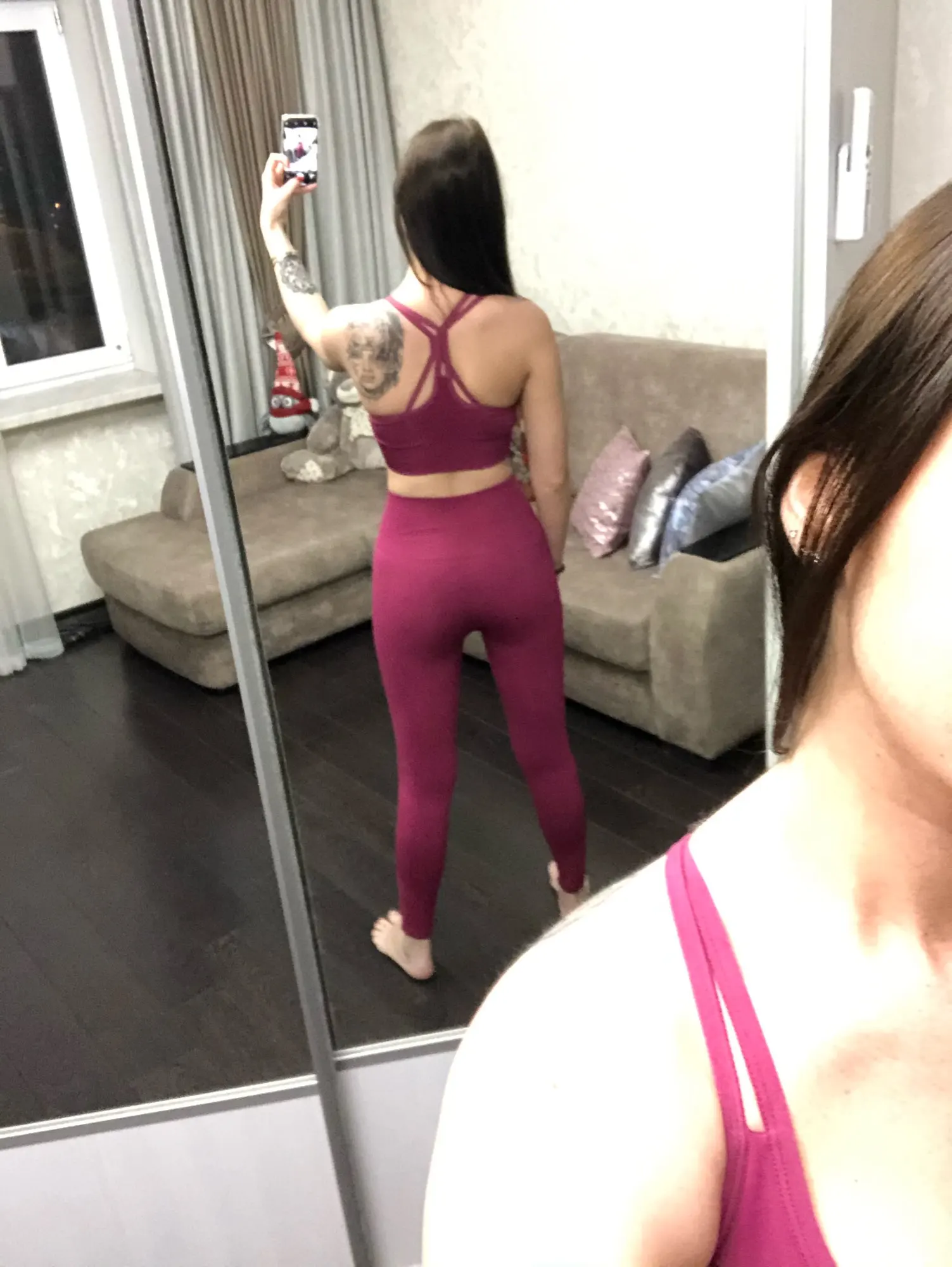 костюм понравился. но на попе пошла стрелка, после второй тренировки ((