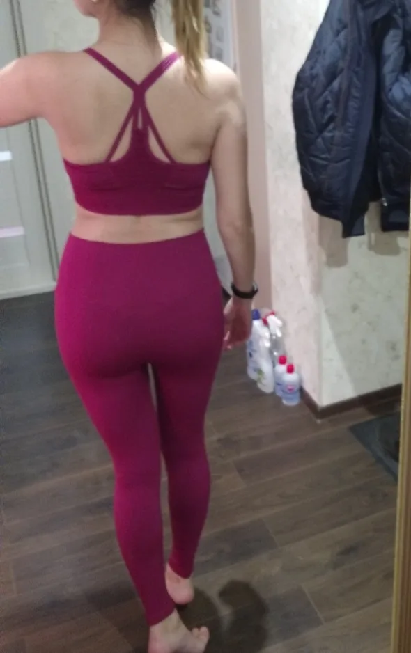 Хороший костюм, ткань довольно плотная, не просвечивает. Топ с хорошей поддержкой и вкладышами. На параметры 88/66/90 леггинсы чуть свободны в талии. Цвет чуть светлее, чем на фото