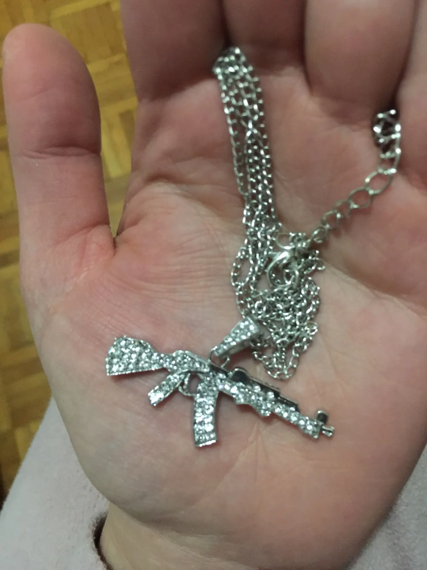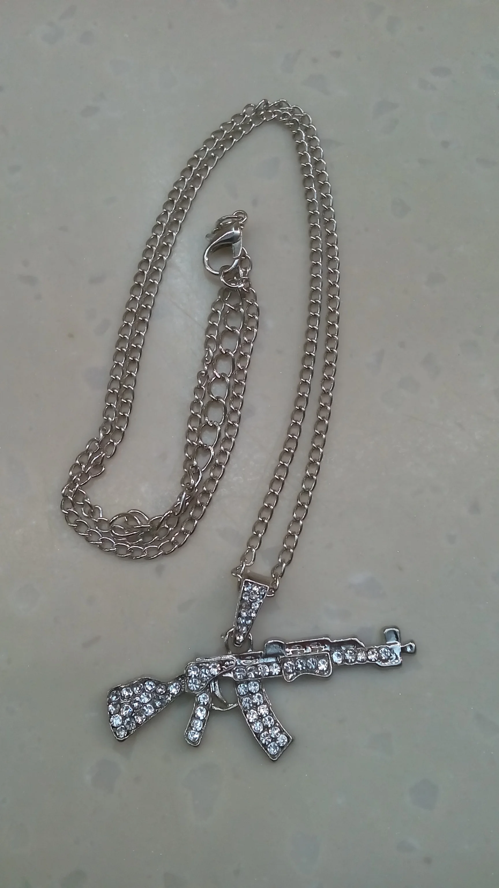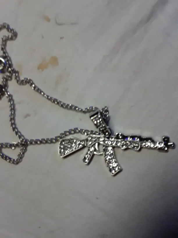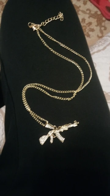 цепочка с кулоном автомат получены, очень качественно изготовлено и инкрустировано, красиво ствол автомата перевешивает немного , стразики ничего так, спасибо, супер быстрая доставка, , рекомендую к покупкам данный магазин и товар.+++++