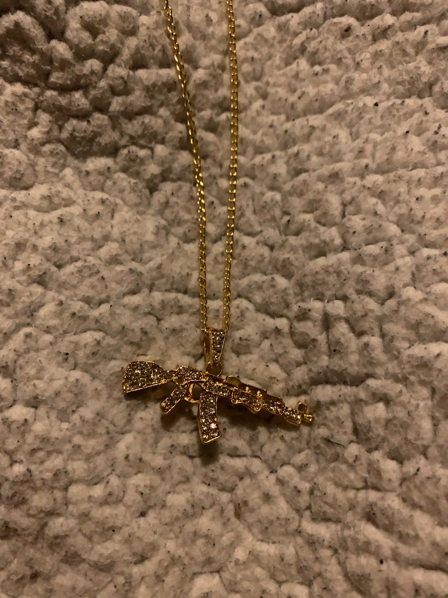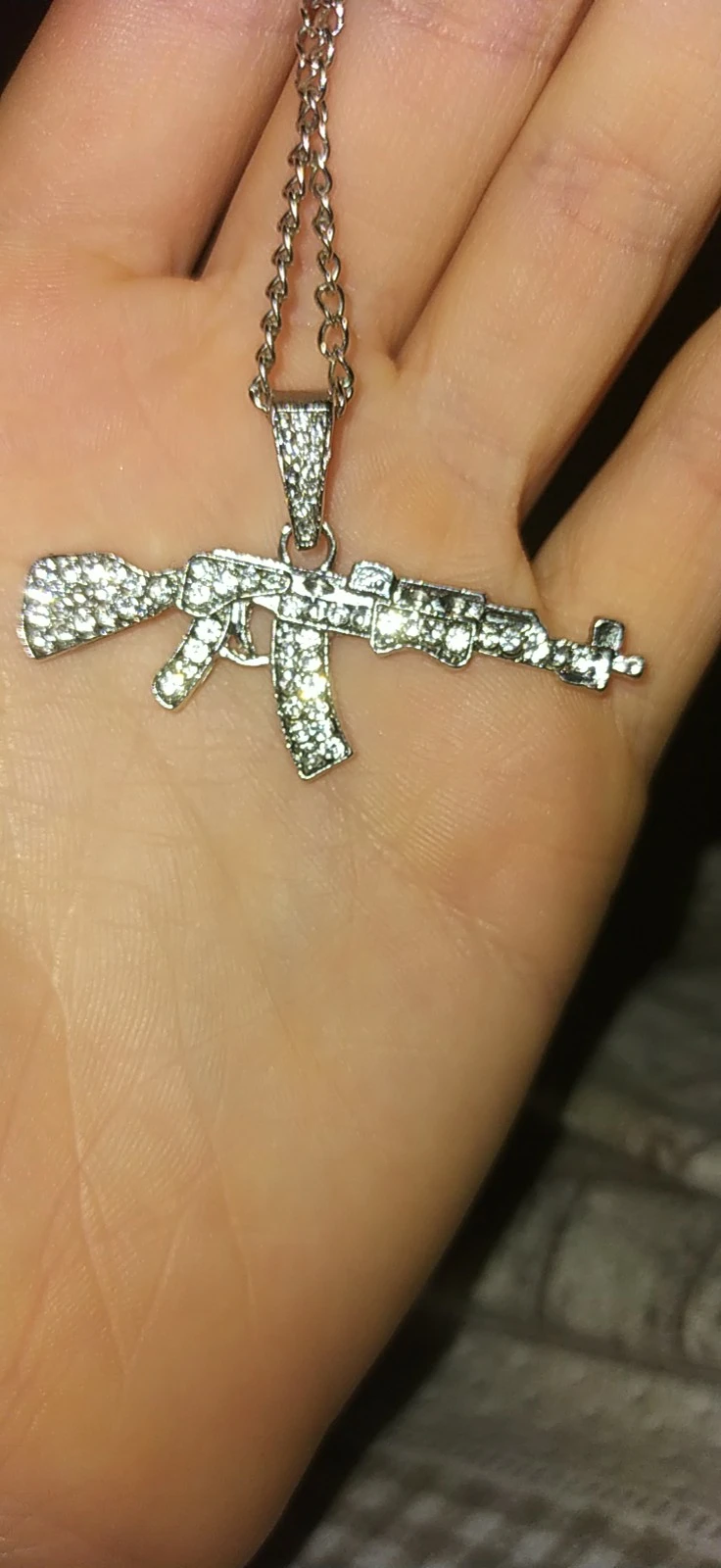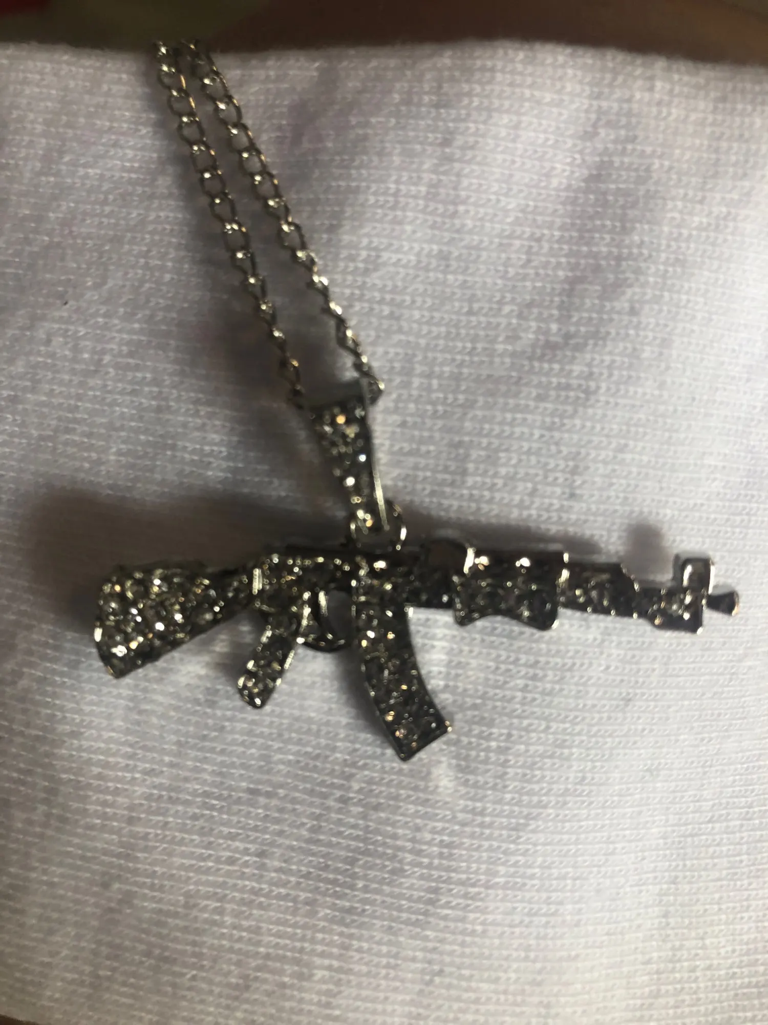 цепочка с кулоном автомат получены, очень качественно изготовлено и инкрустировано, красиво ствол автомата перевешивает немного , стразики ничего так, спасибо, супер быстрая доставка, , рекомендую к покупкам данный магазин и товар.+++++
