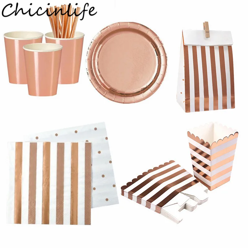 Chicinlife Rosegold одноразовая посуда попкорн коробка соломенная бумажная тарелка стаканы Свадебные товары для украшения дня рождения