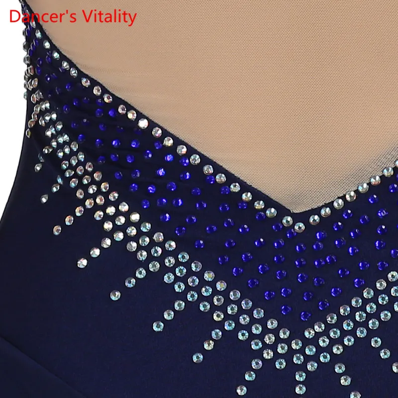 Платье для современных танцев, юбка со стразами и блестками, одежда...