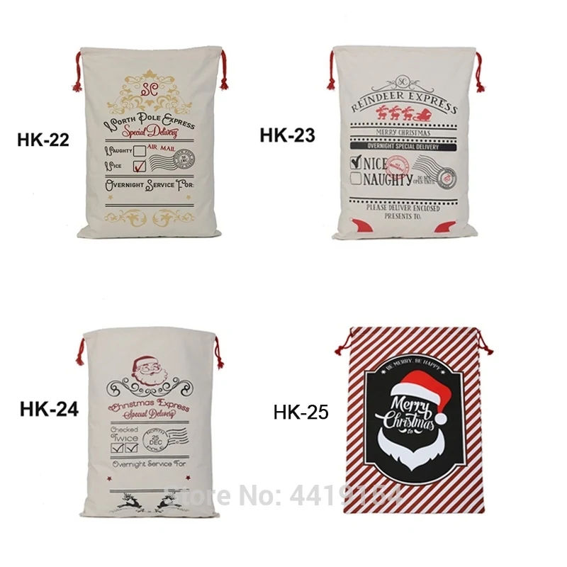 1 шт. Санта Рождественский подарок сумки смешивать стили большой мешок Санта-Клауса на Рождество шнурок холщовых сумок детские игрушки вечерние украшения