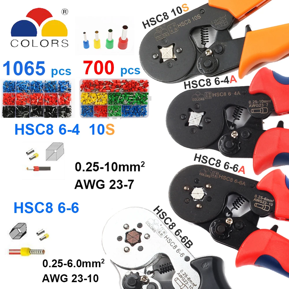 HSC8 10S 0,25-10 мм2 23-7AWG Обжимные Щипцы HSC8 6-4A HSC8 6-6 мини плоскогубцы с круглым носом с трубчатыми игольчатыми клеммами коробка ручных инструментов