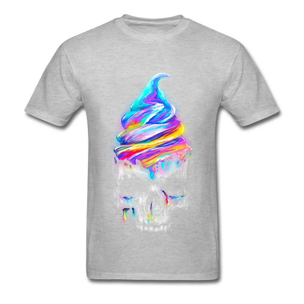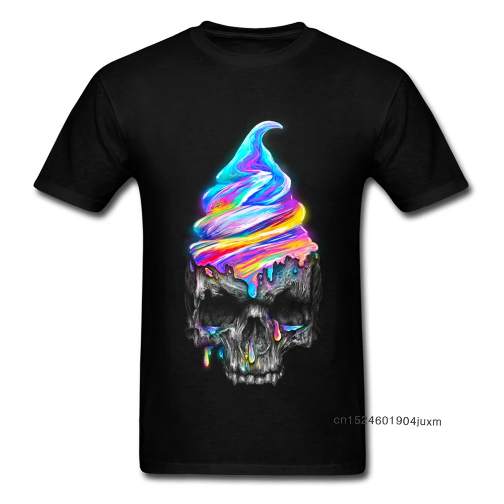 Футболка Fresh To Death, Мужская футболка, летняя футболка с радужным принтом мороженого, черные Топы И Футболки с 3D черепом, хлопковая уличная одежда